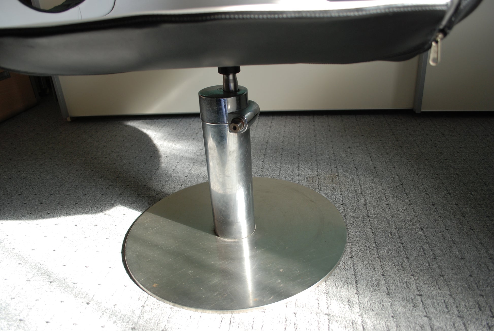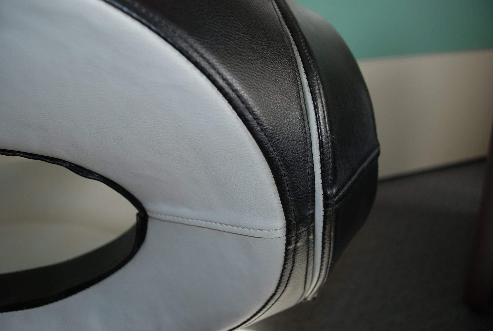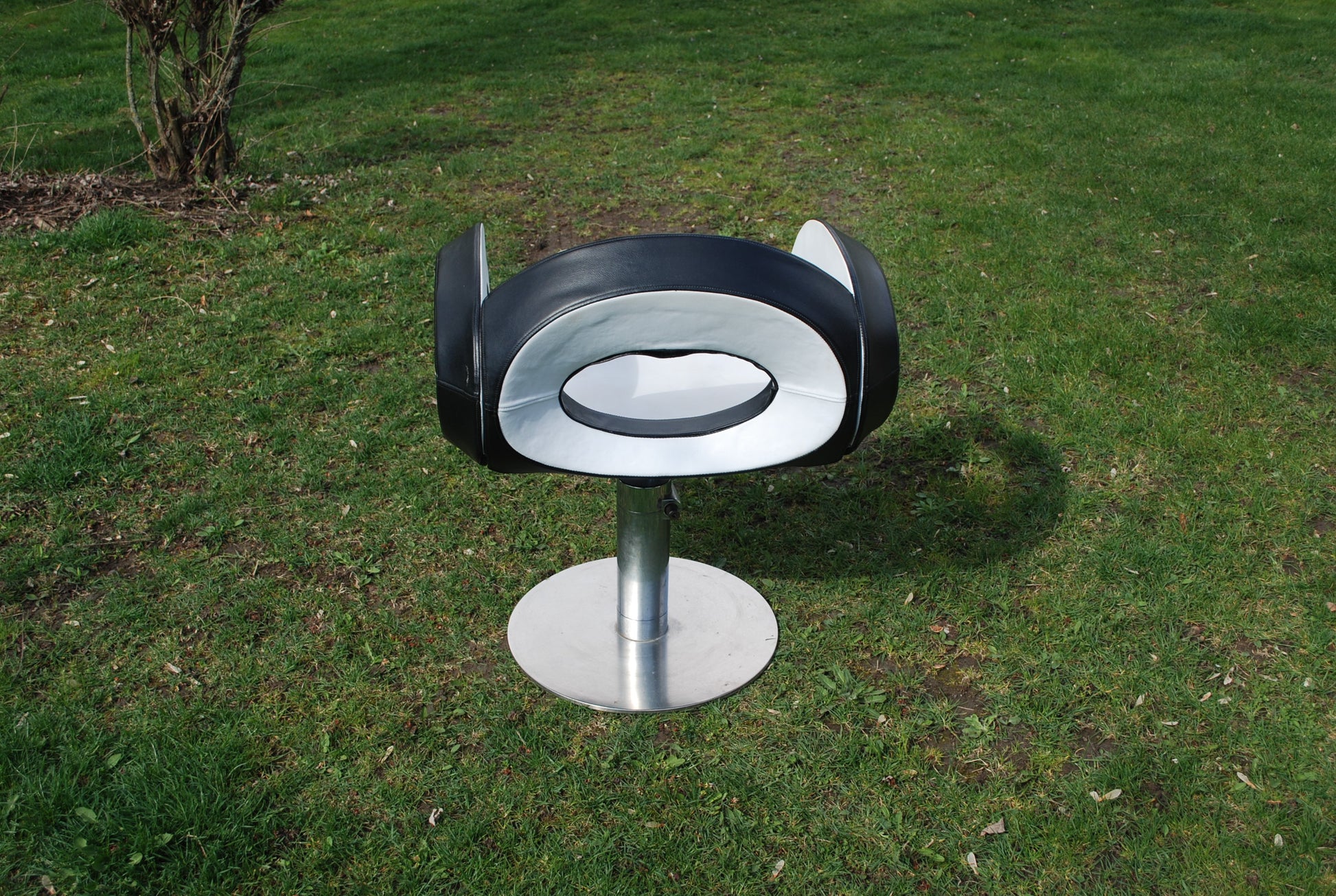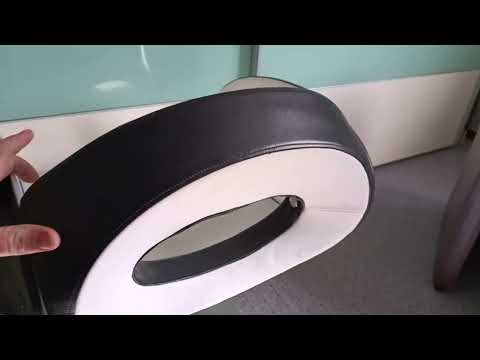 Het is gemaakt van een soort kunstleder en is zacht, indruk baar dus erg comfortable en kan ronddraaien.