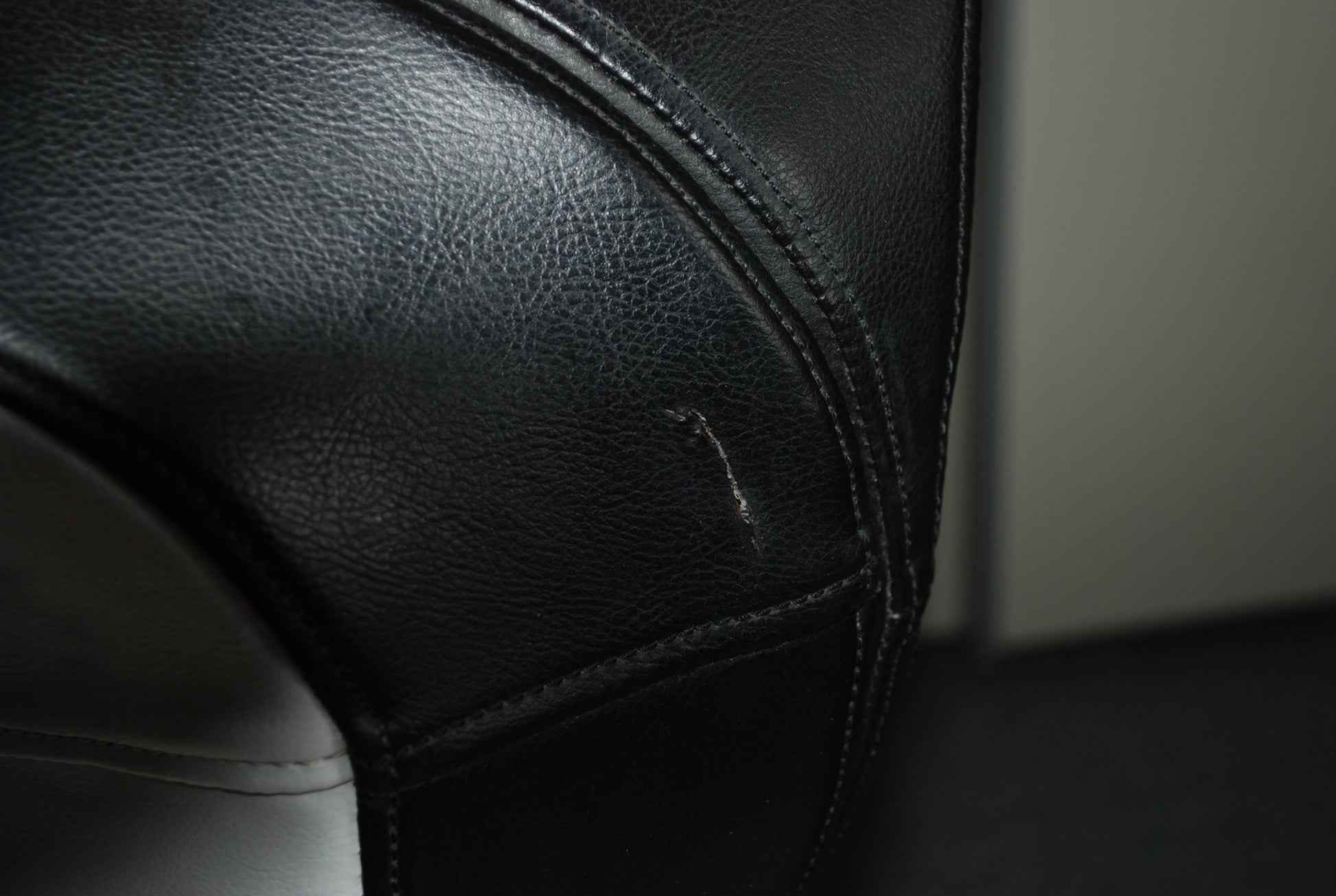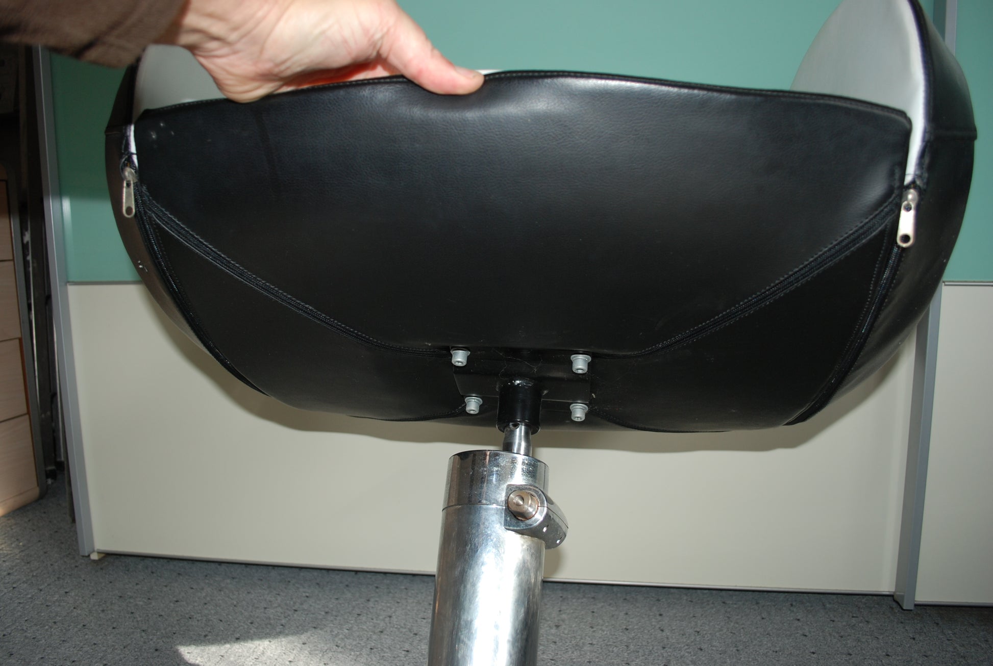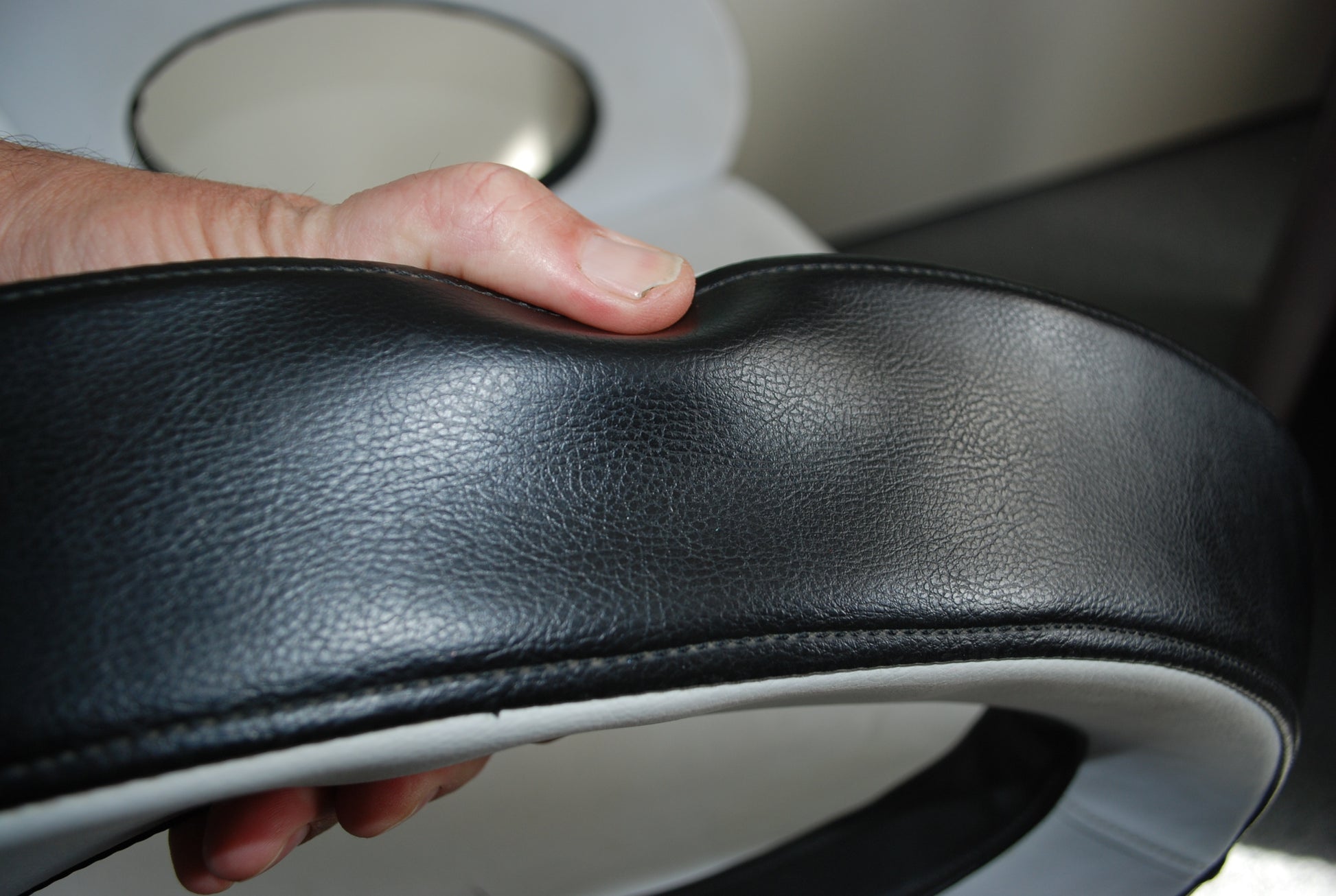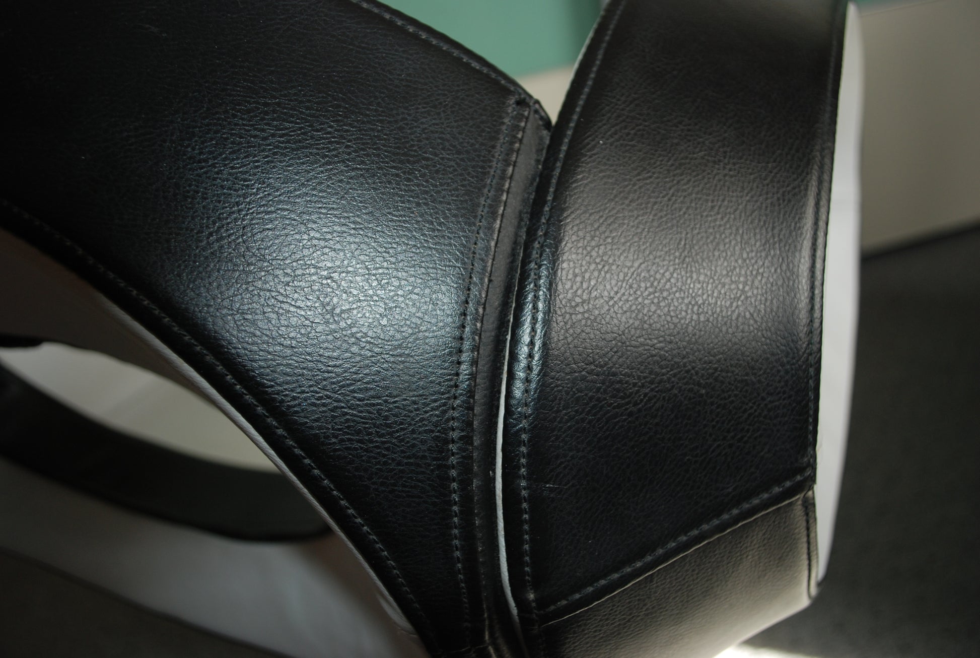 Het is gemaakt van een soort kunstleder en is zacht, indruk baar dus erg comfortable en kan ronddraaien.