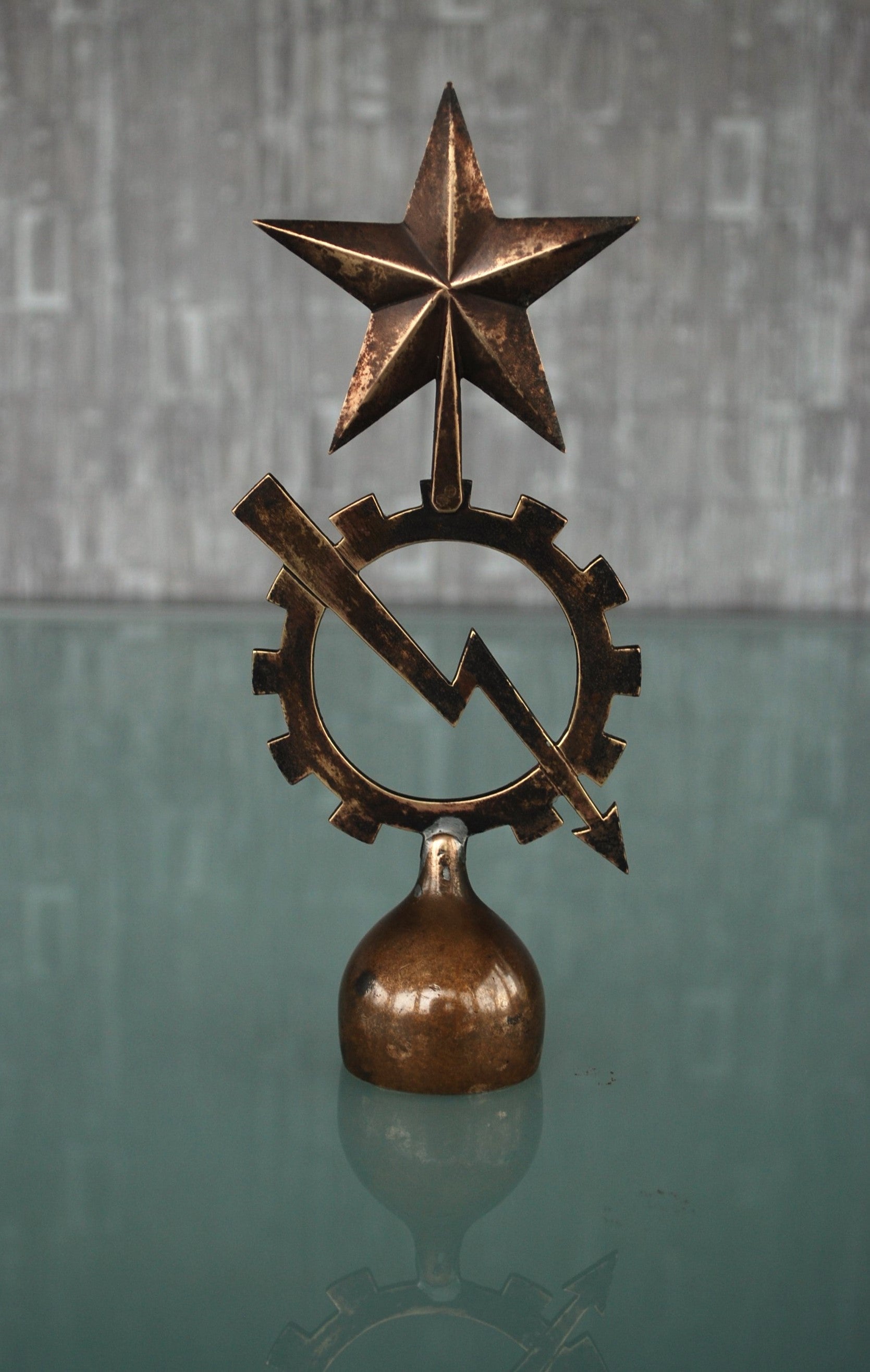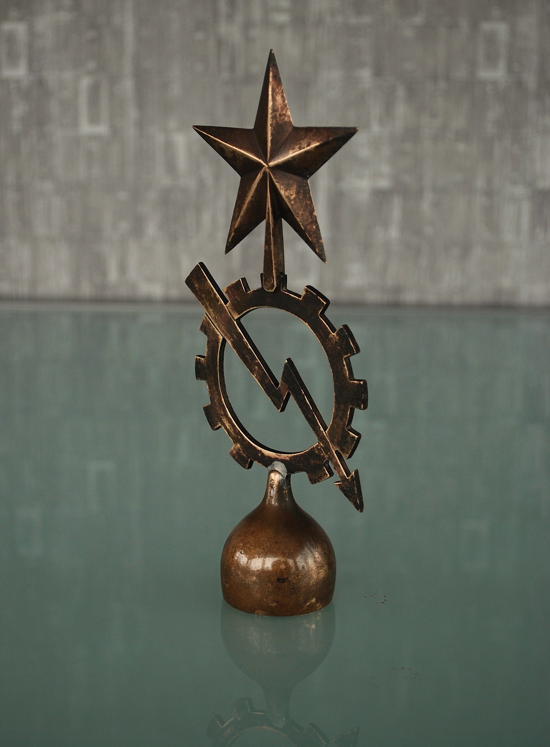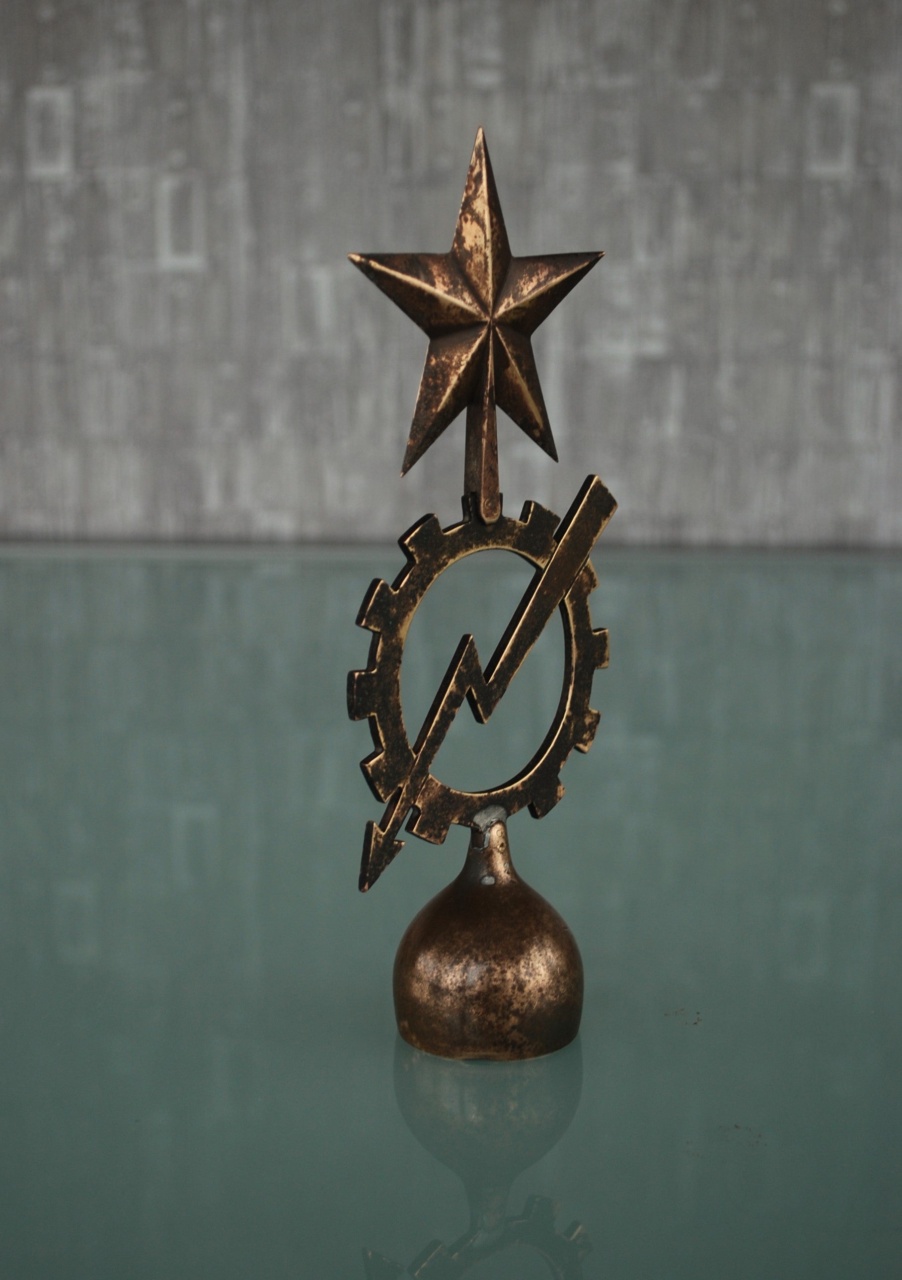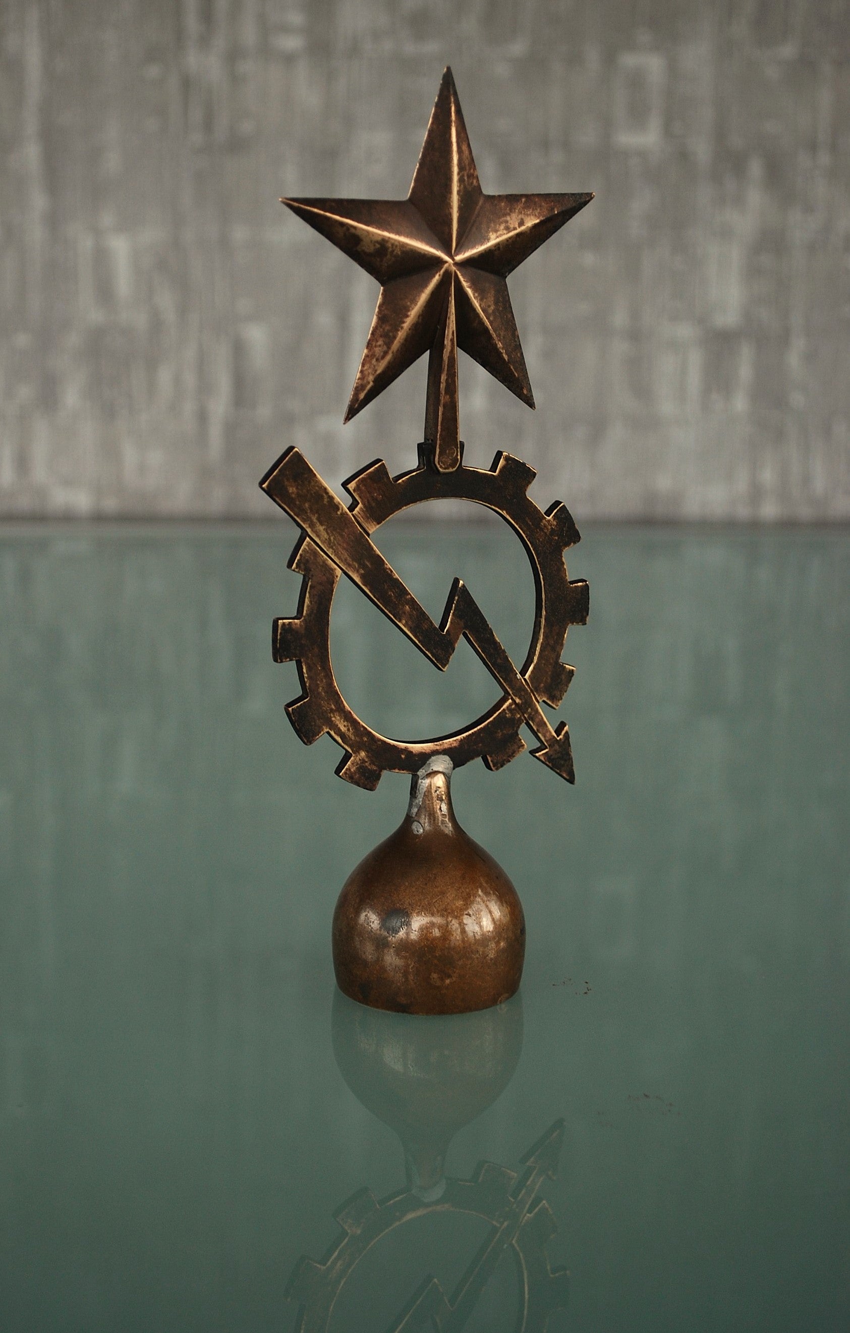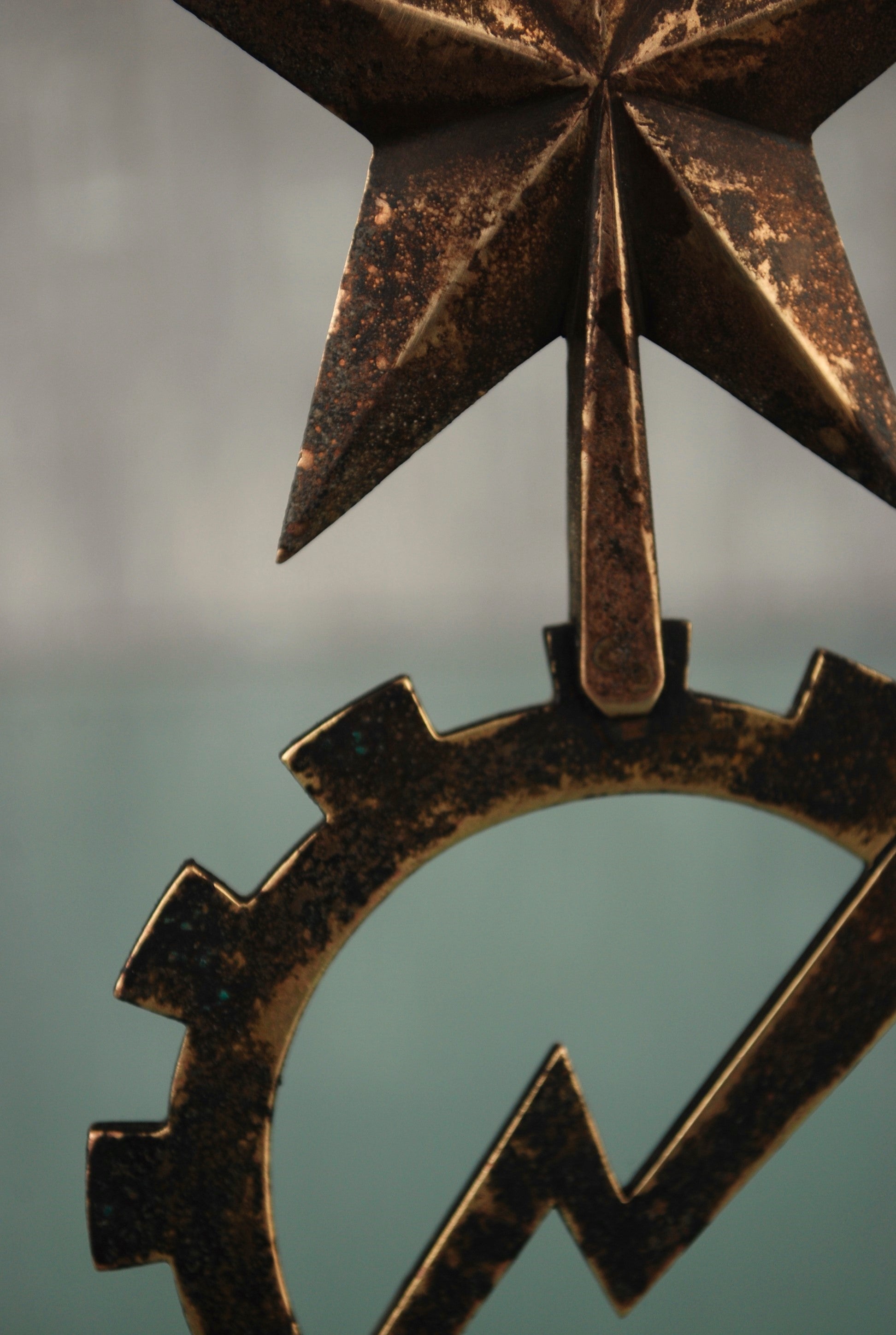 Vlag stok punt met ster, tandwiel en bliksemschicht