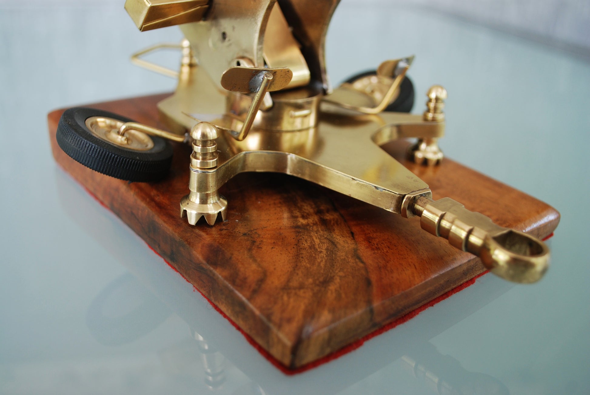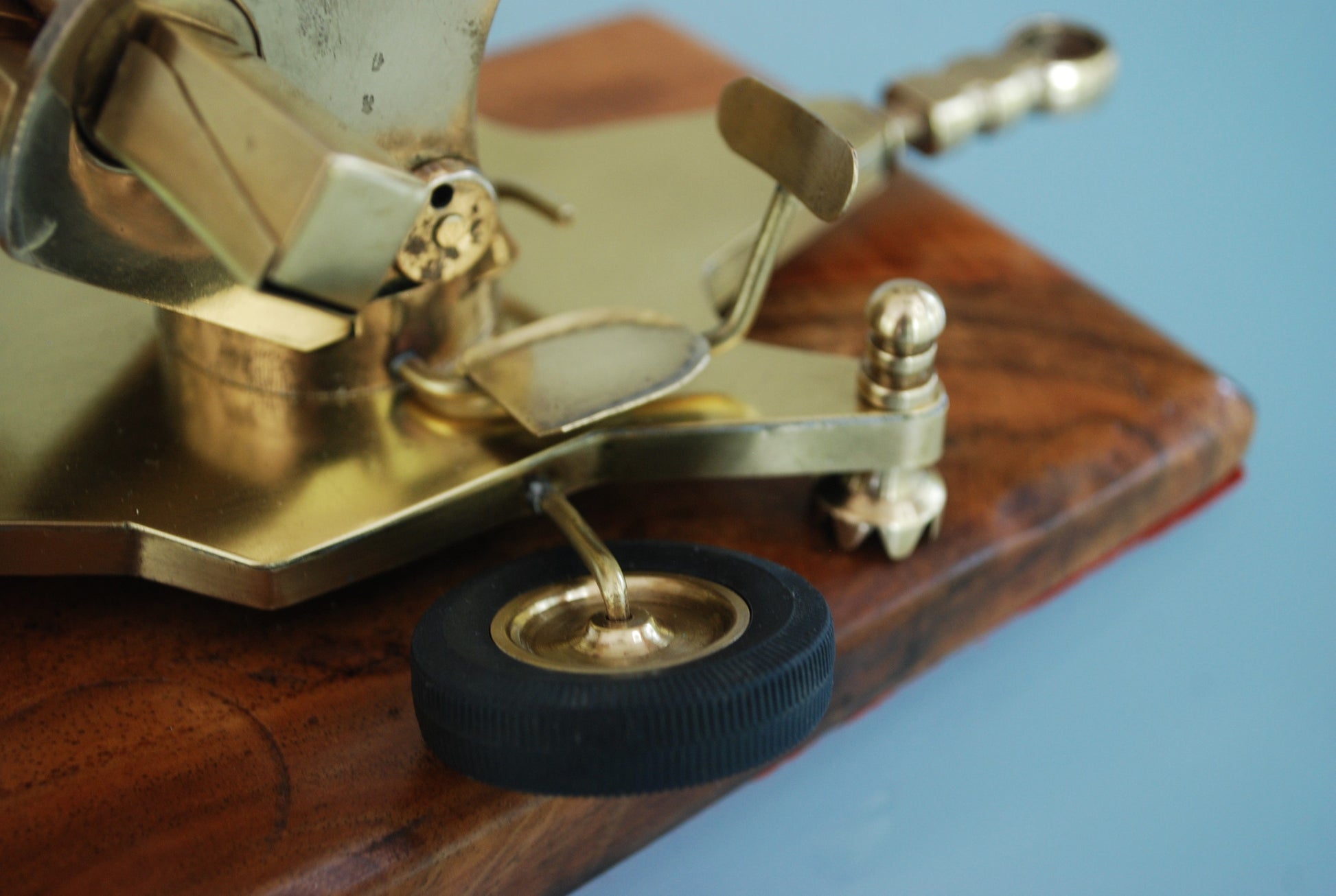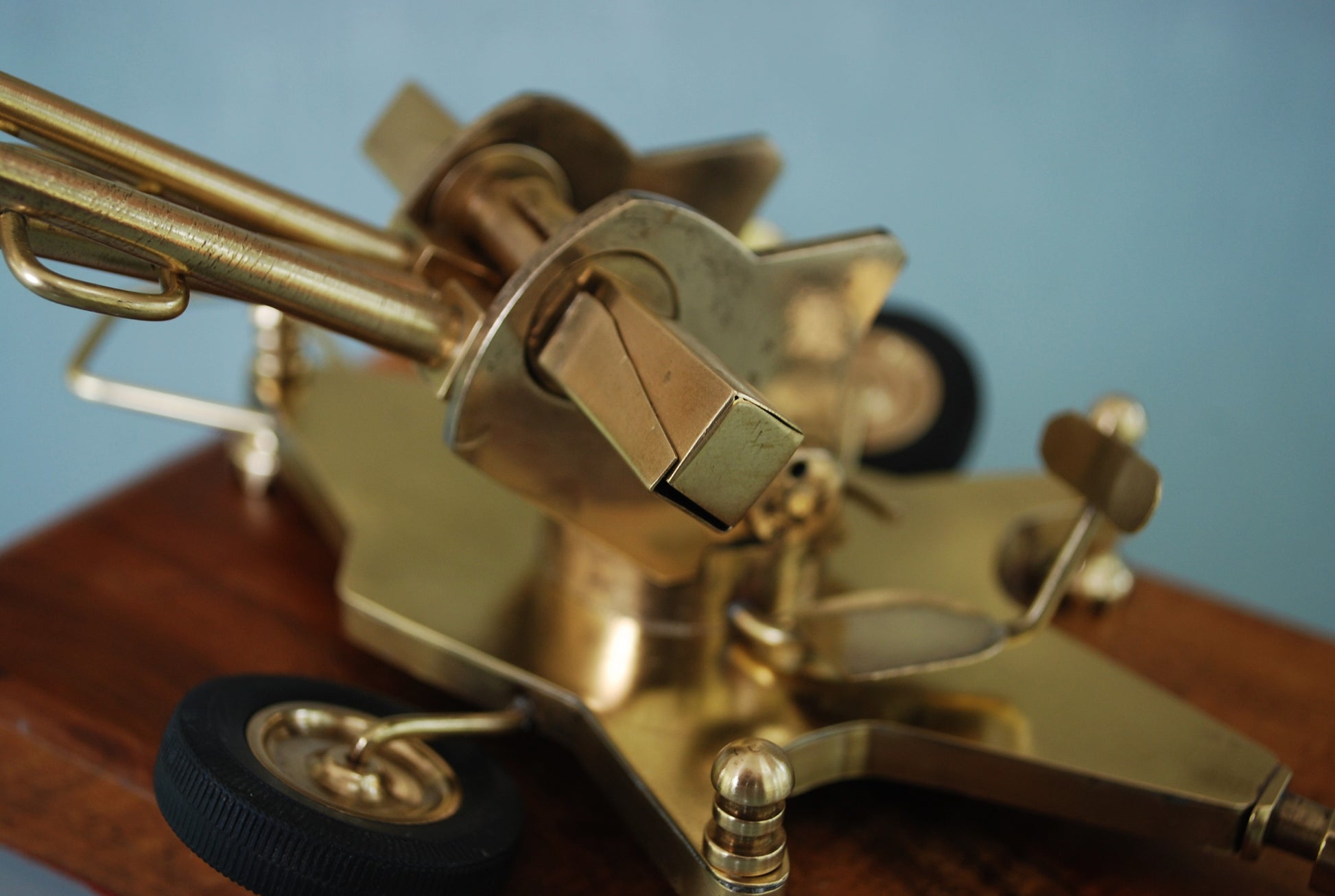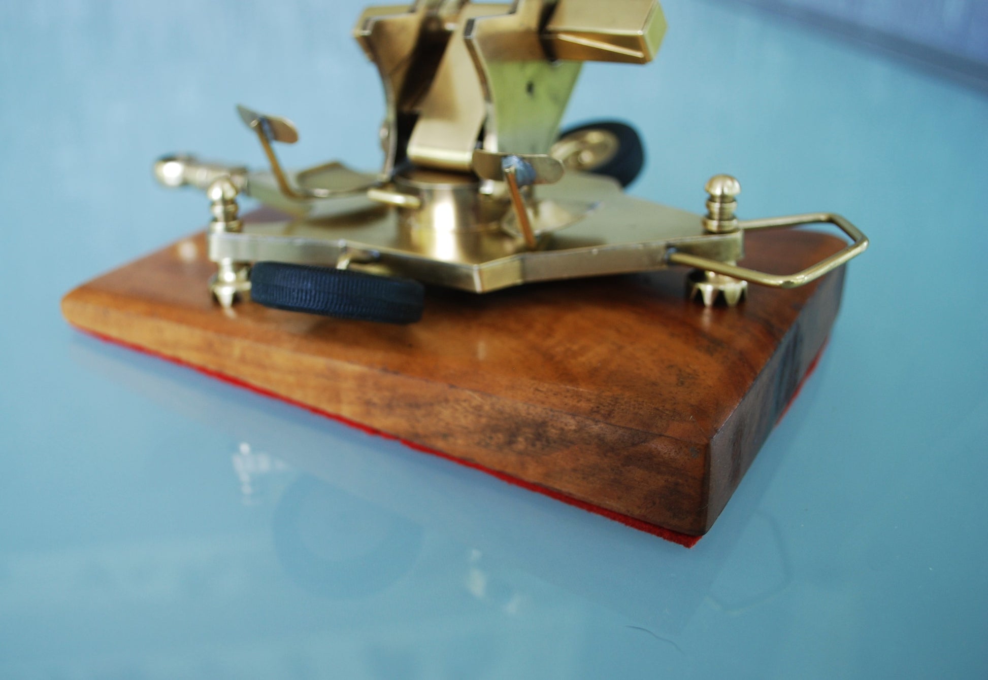 ZU-23 Dubbelloops Luchtafweerkanon Messing model op teakhouten sokkel. 1960