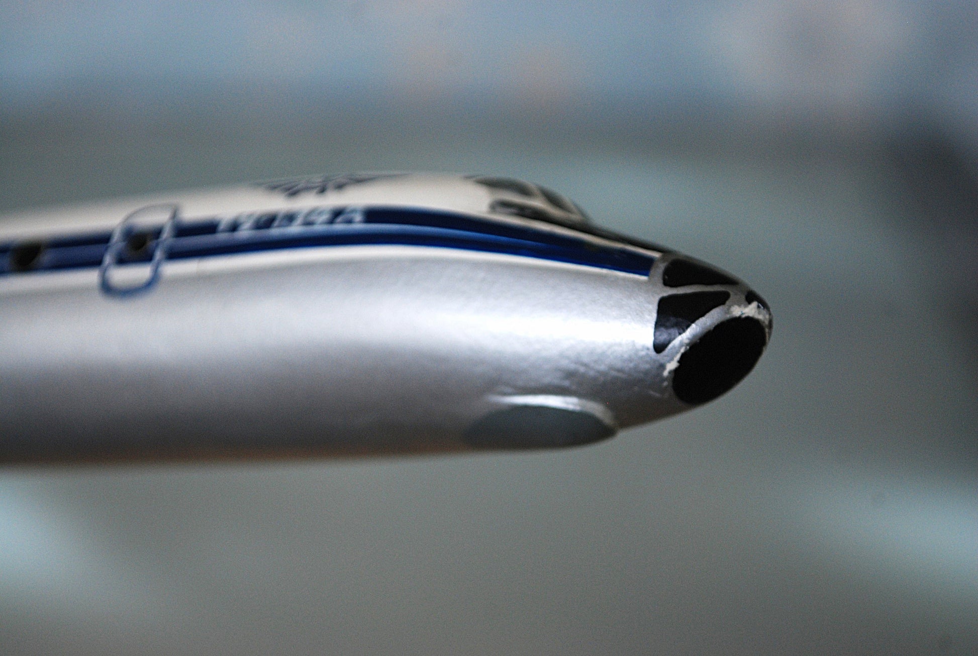 Schade aan achtervleugel, lak is weg, onder zit het er nog op.