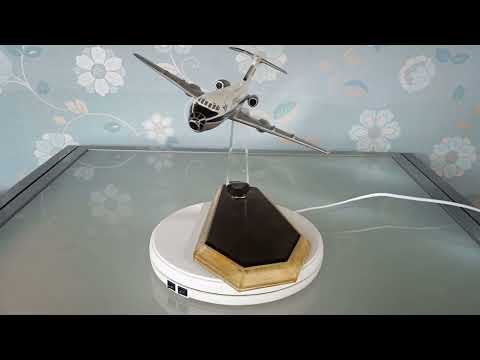 Het is een massief metalen vliegtuig op een plexiglas beugel en sokkel.