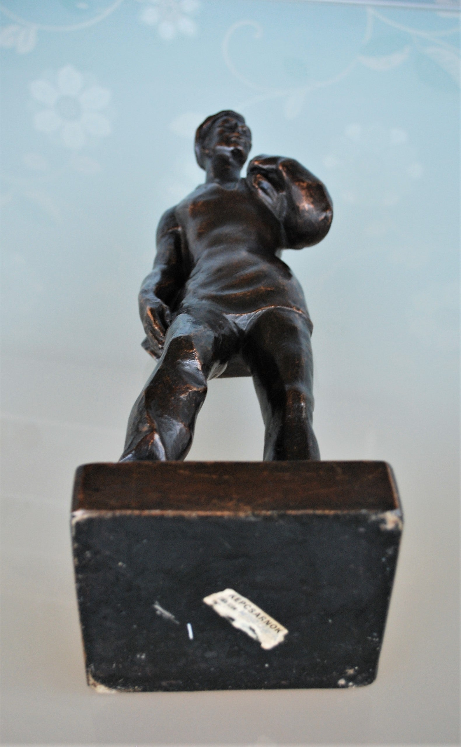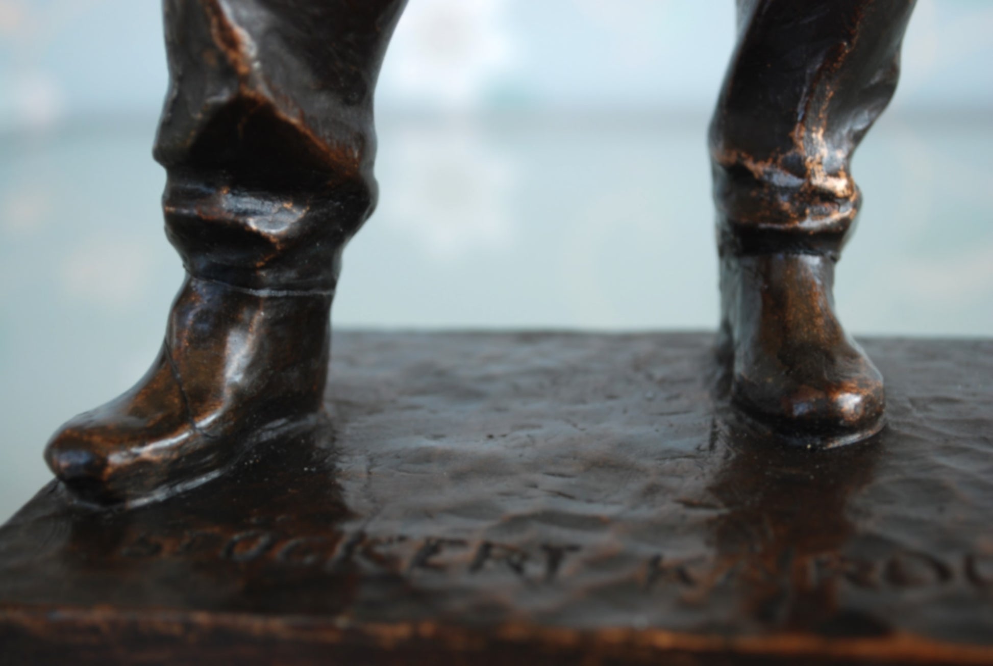 De naam van de kunstenaars staat op de sokkel en onderop zit nog de originele sticker