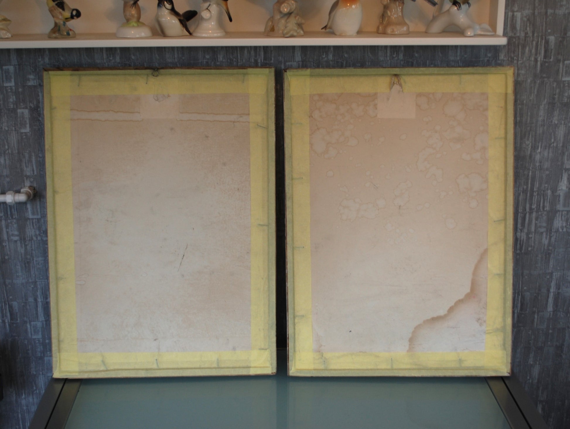 Beide hebben waterschade, zie foto's maar wel in de originele lijsten