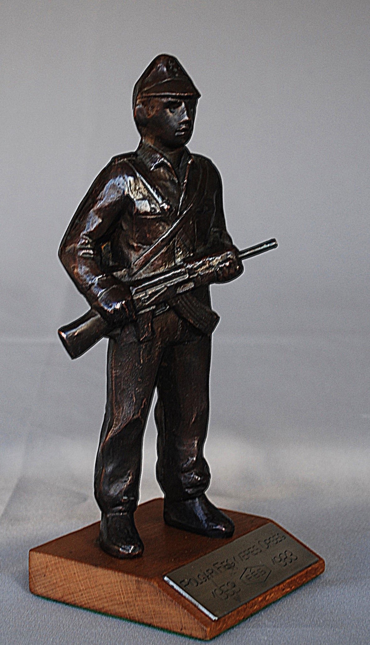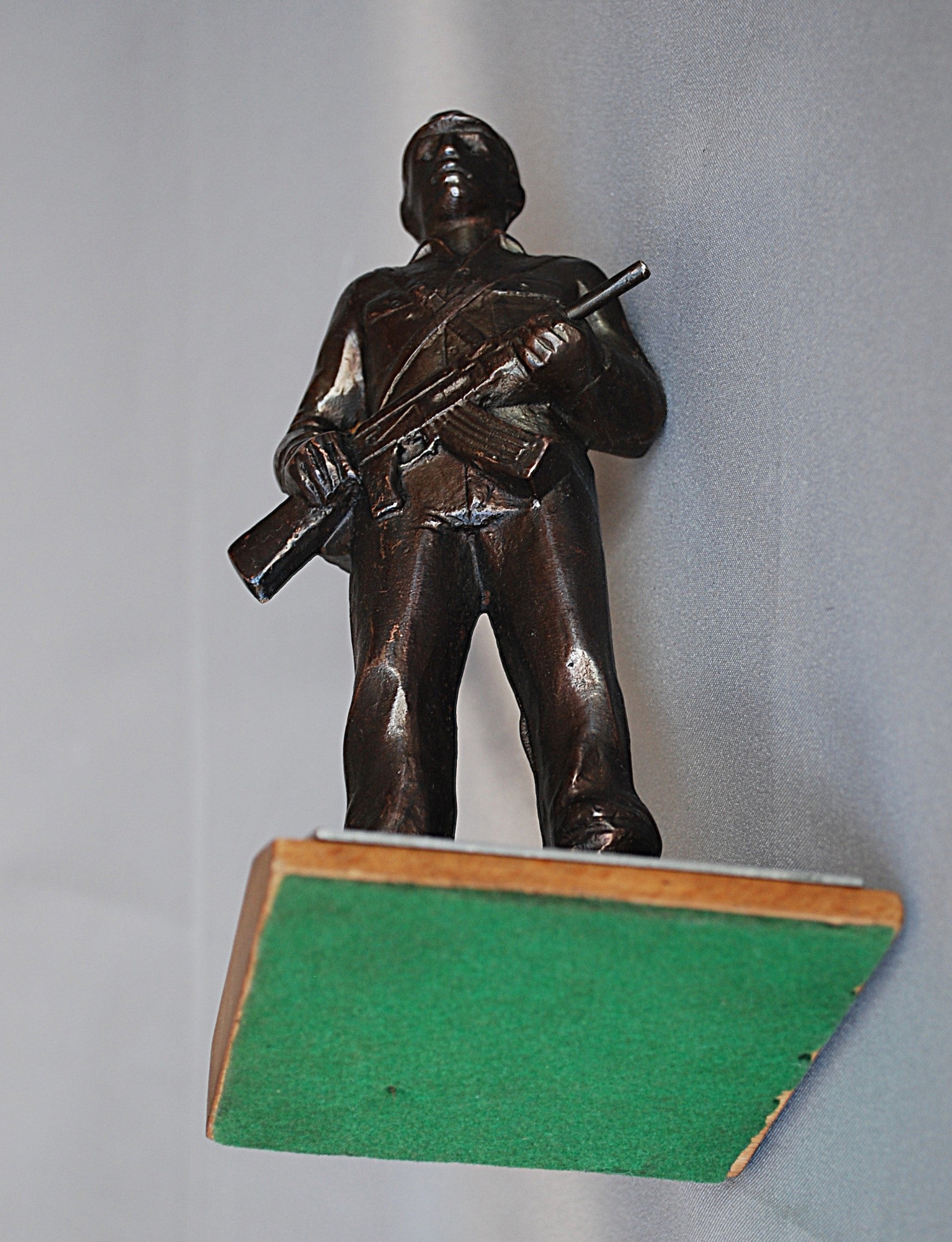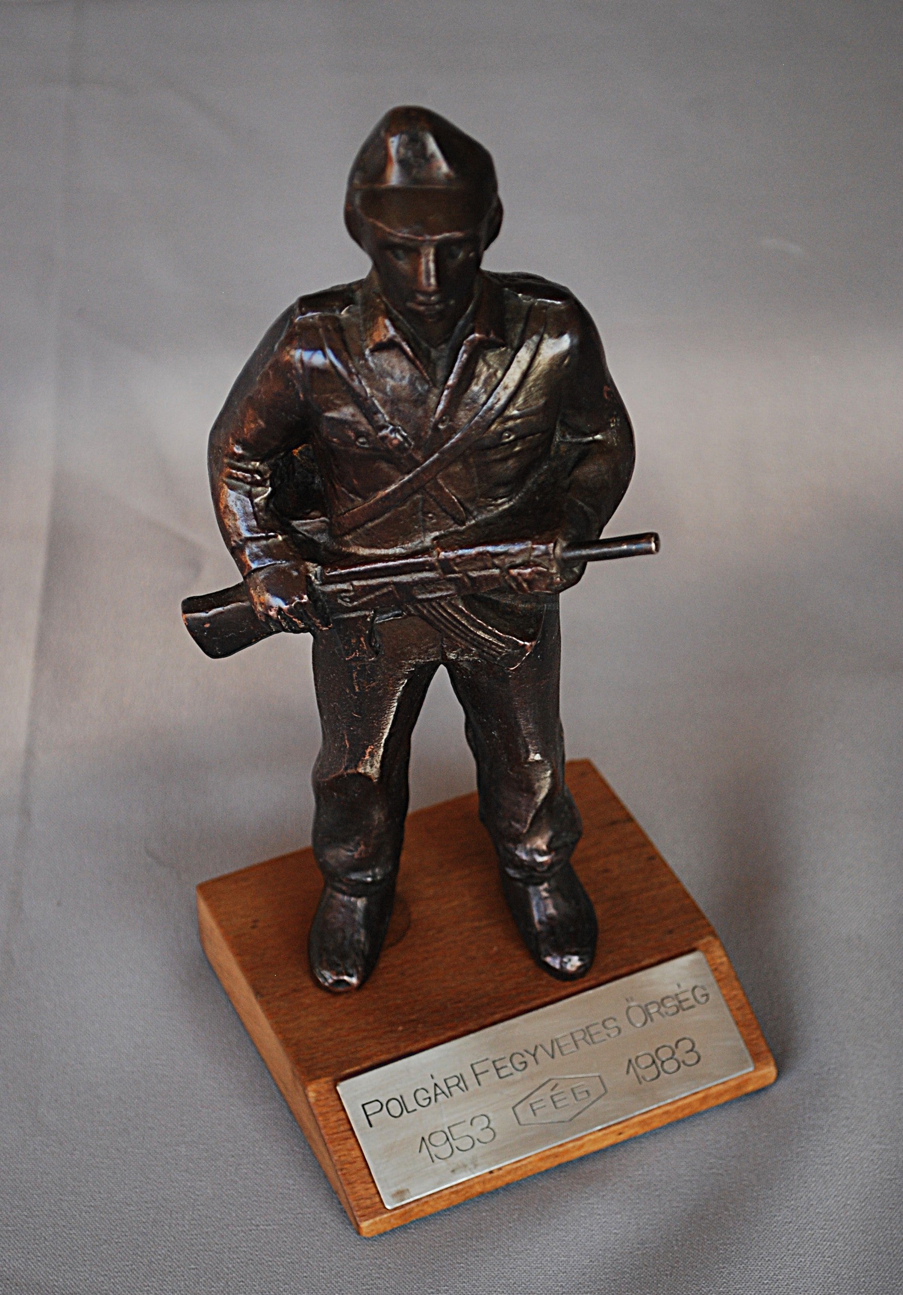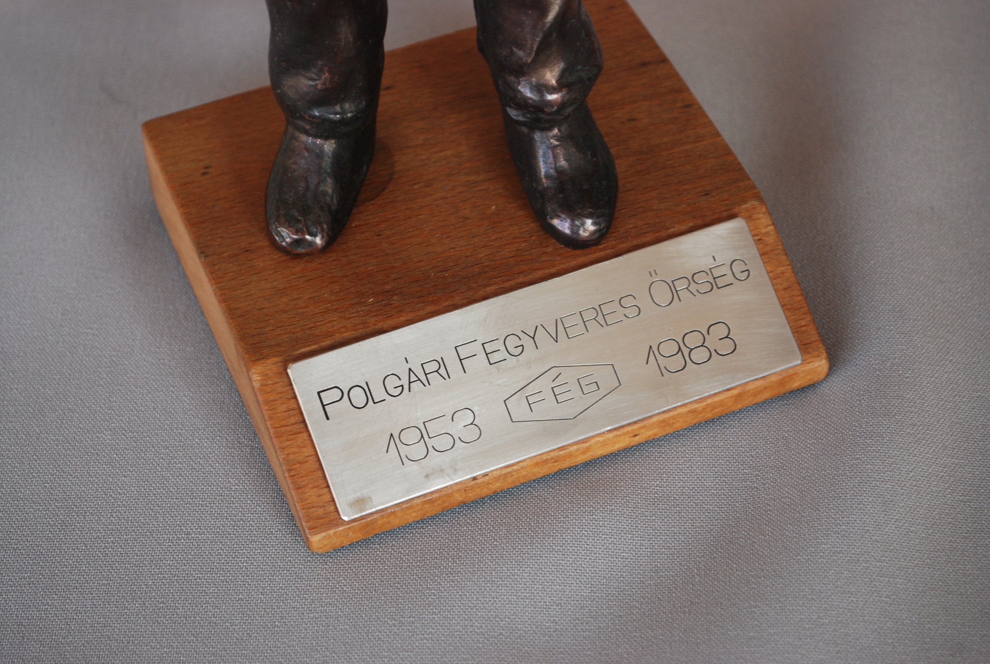 Zwaar metalen beeld geschonken door de FÉG na 30 jaar in dienst bij de gewapend burger wacht.