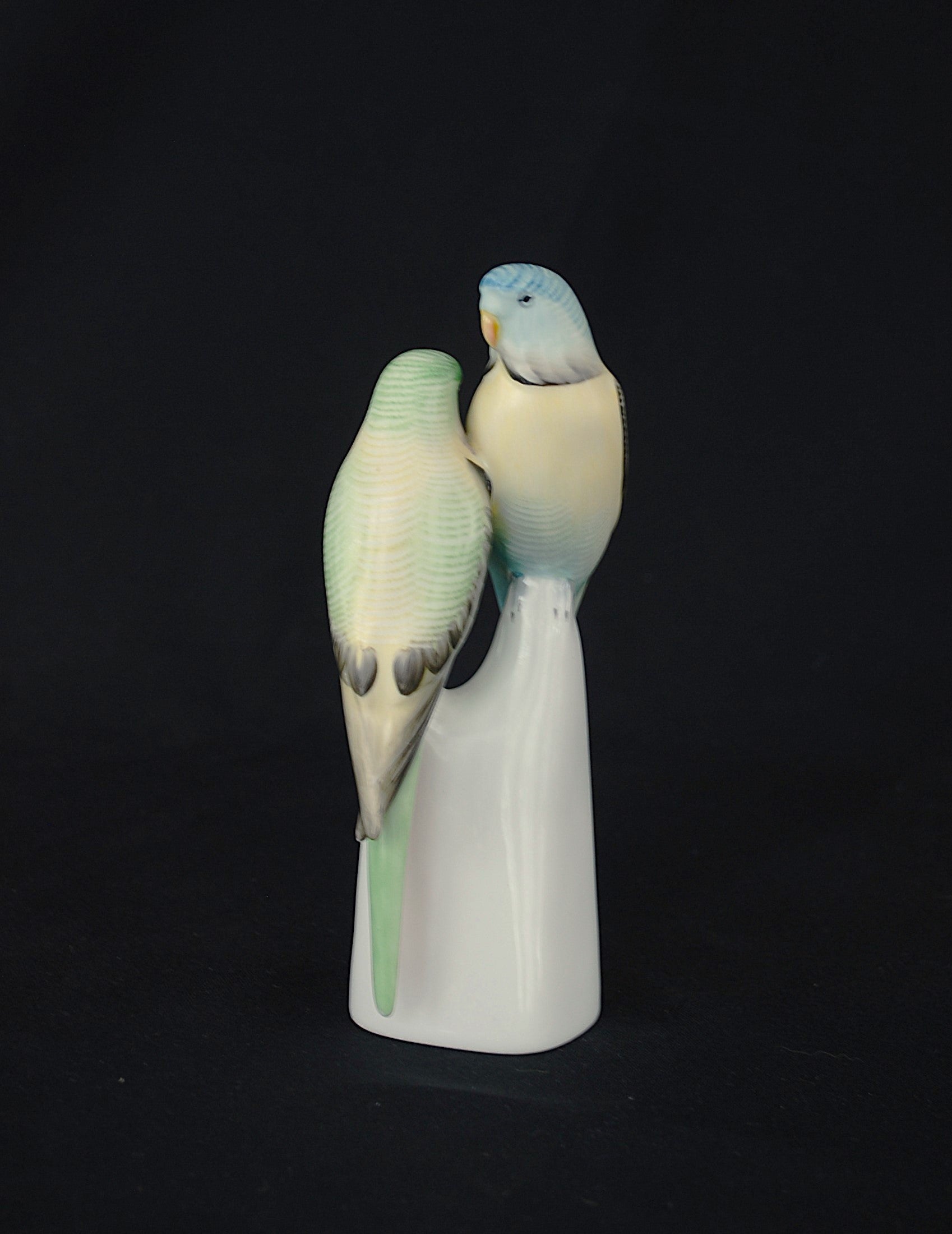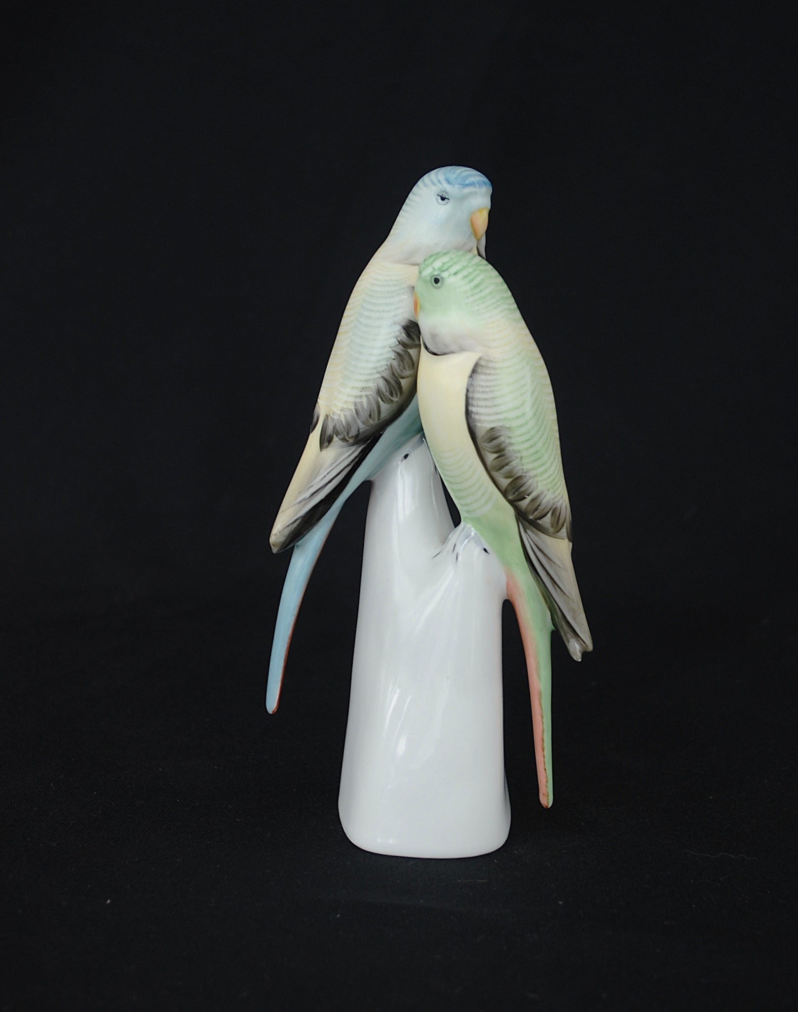Grasparkiet paar. Vintage porselein vogel