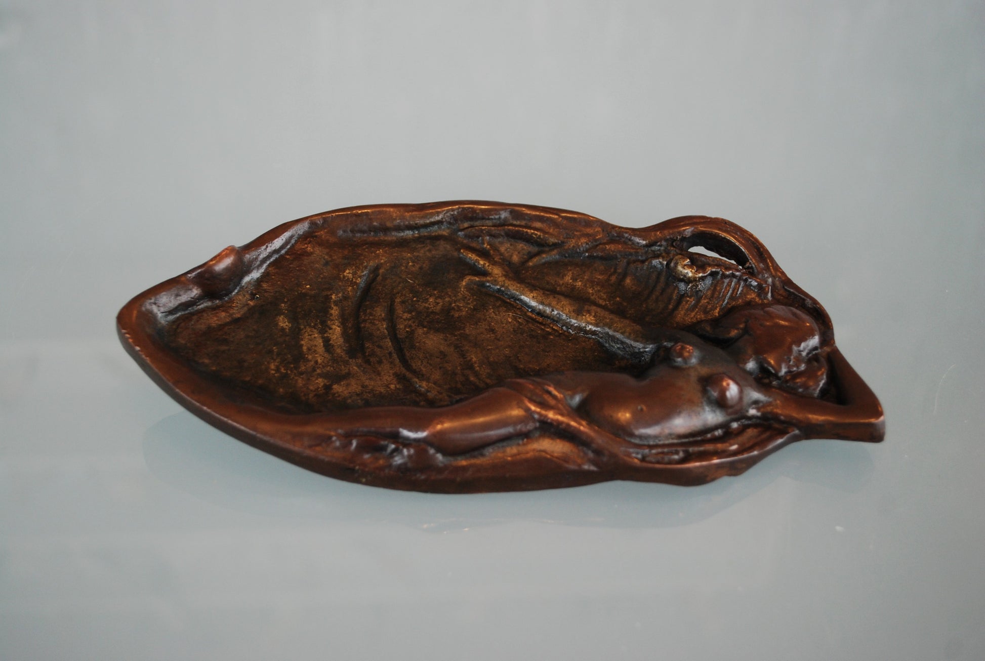 Mooie oude Jugendstil schaal van een sensuele dame.