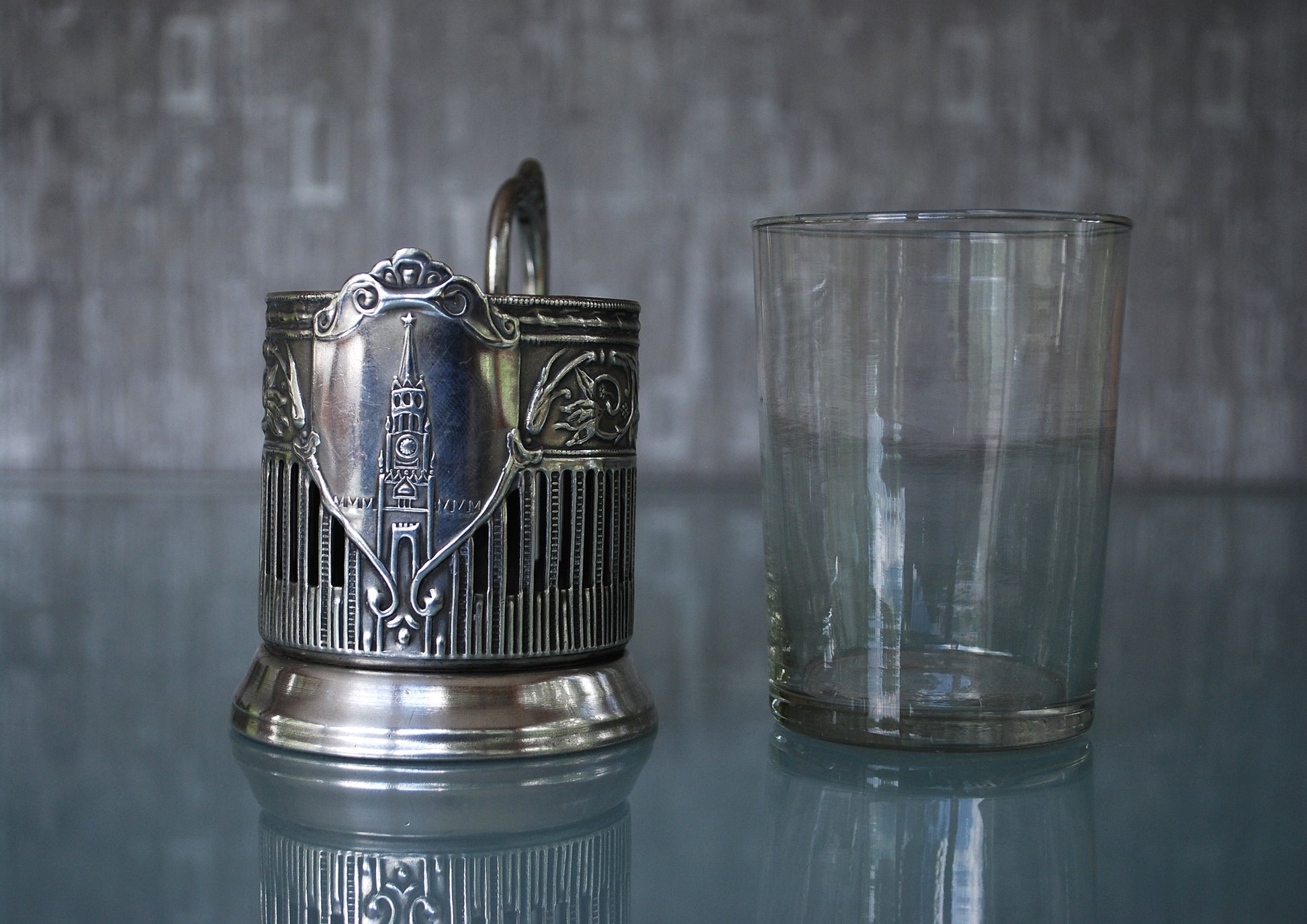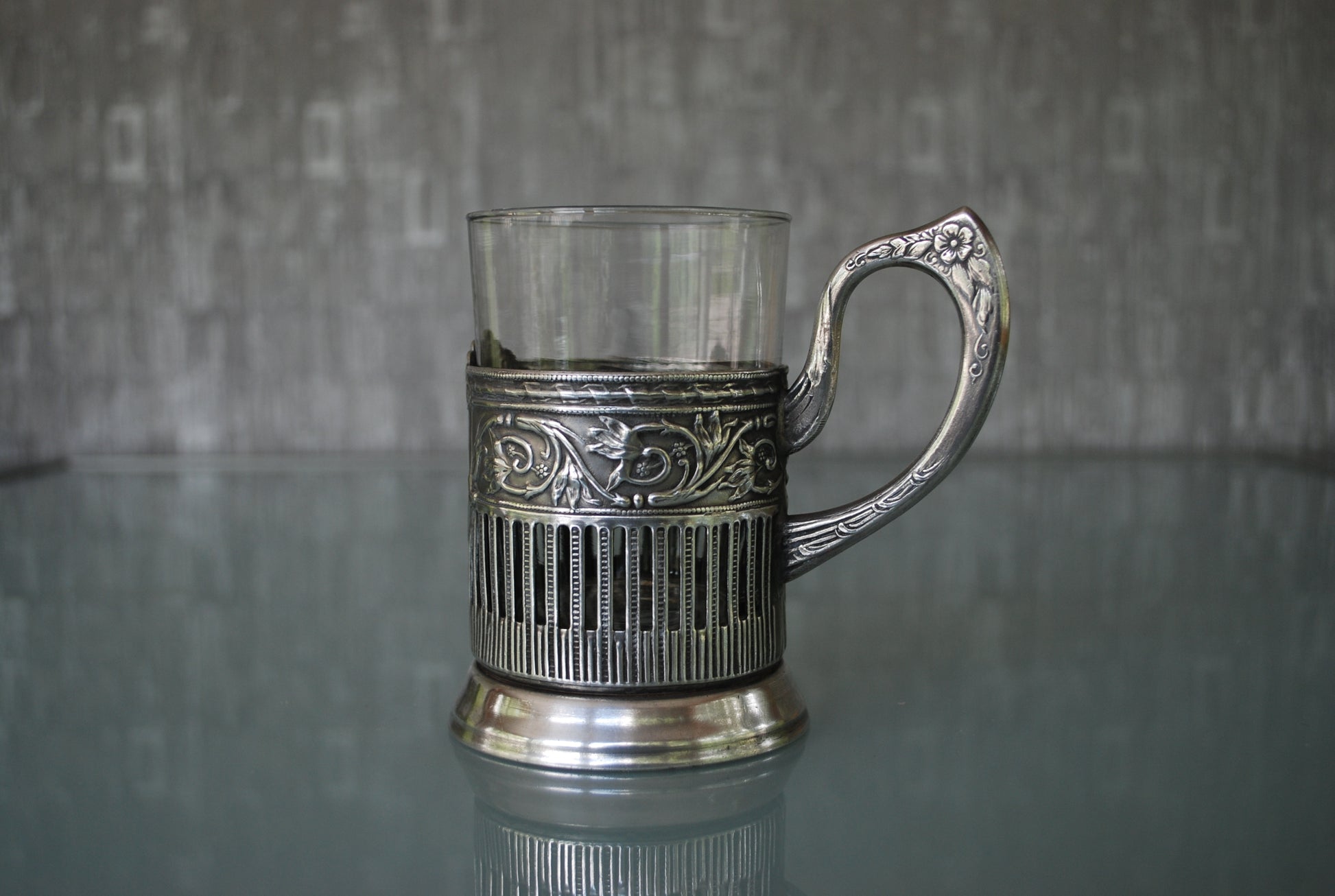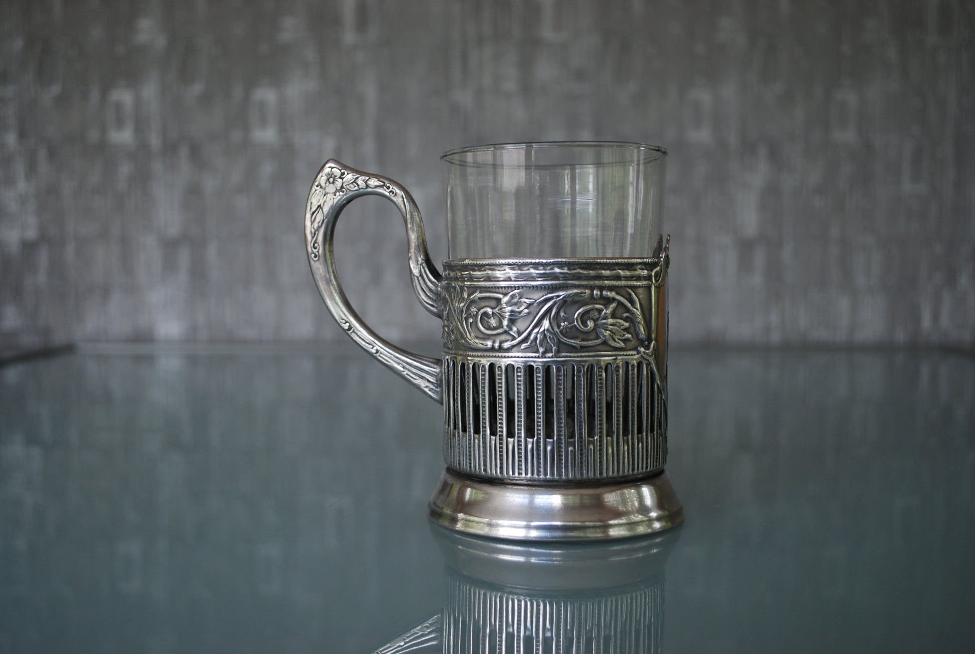 Bekerhouder verzilverd Melchior / Cupronickel Podstakannik.