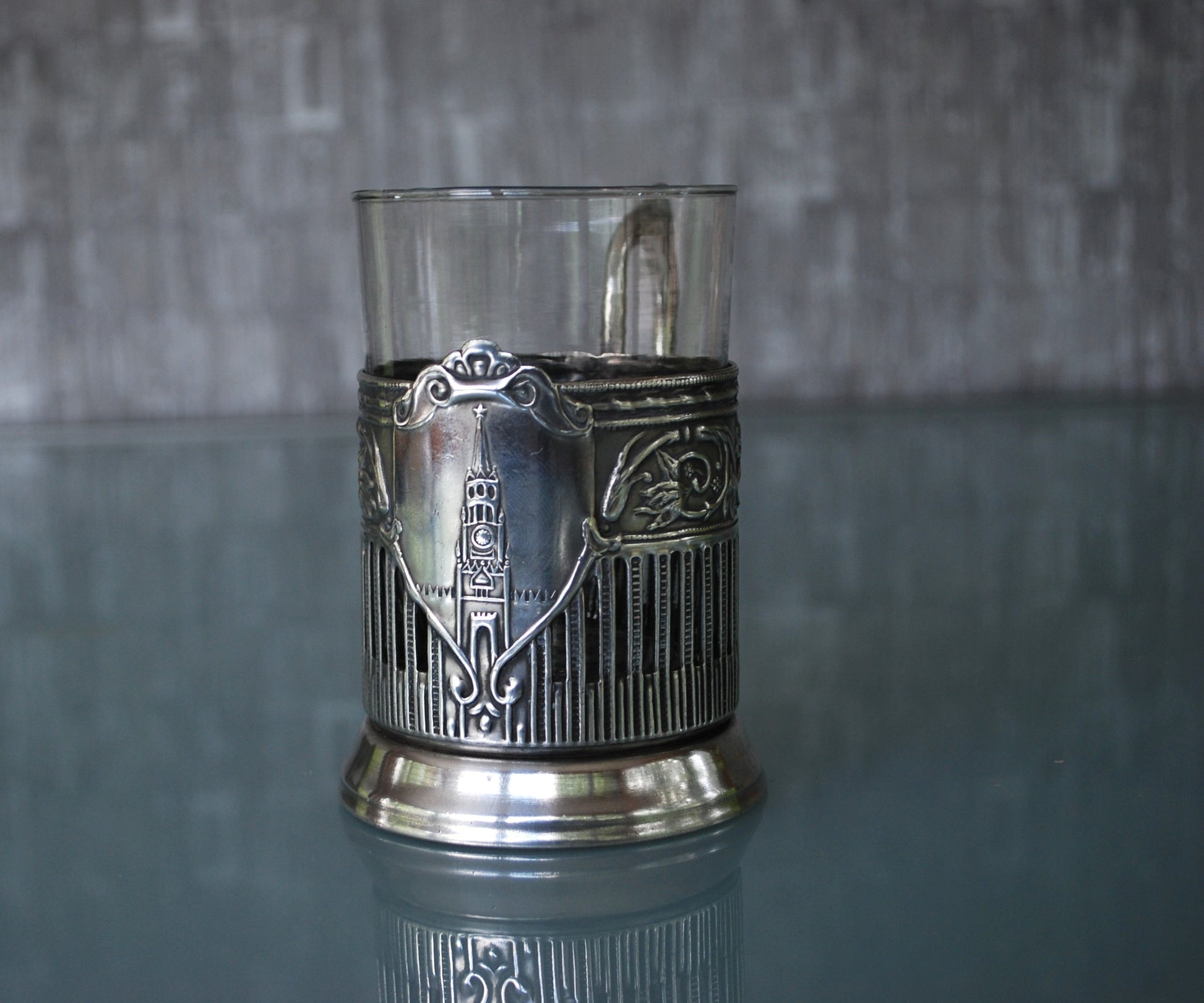 Moskou Kremlin Glashouder met prachtige oor Melchior / Cupronickel Podstakannik.