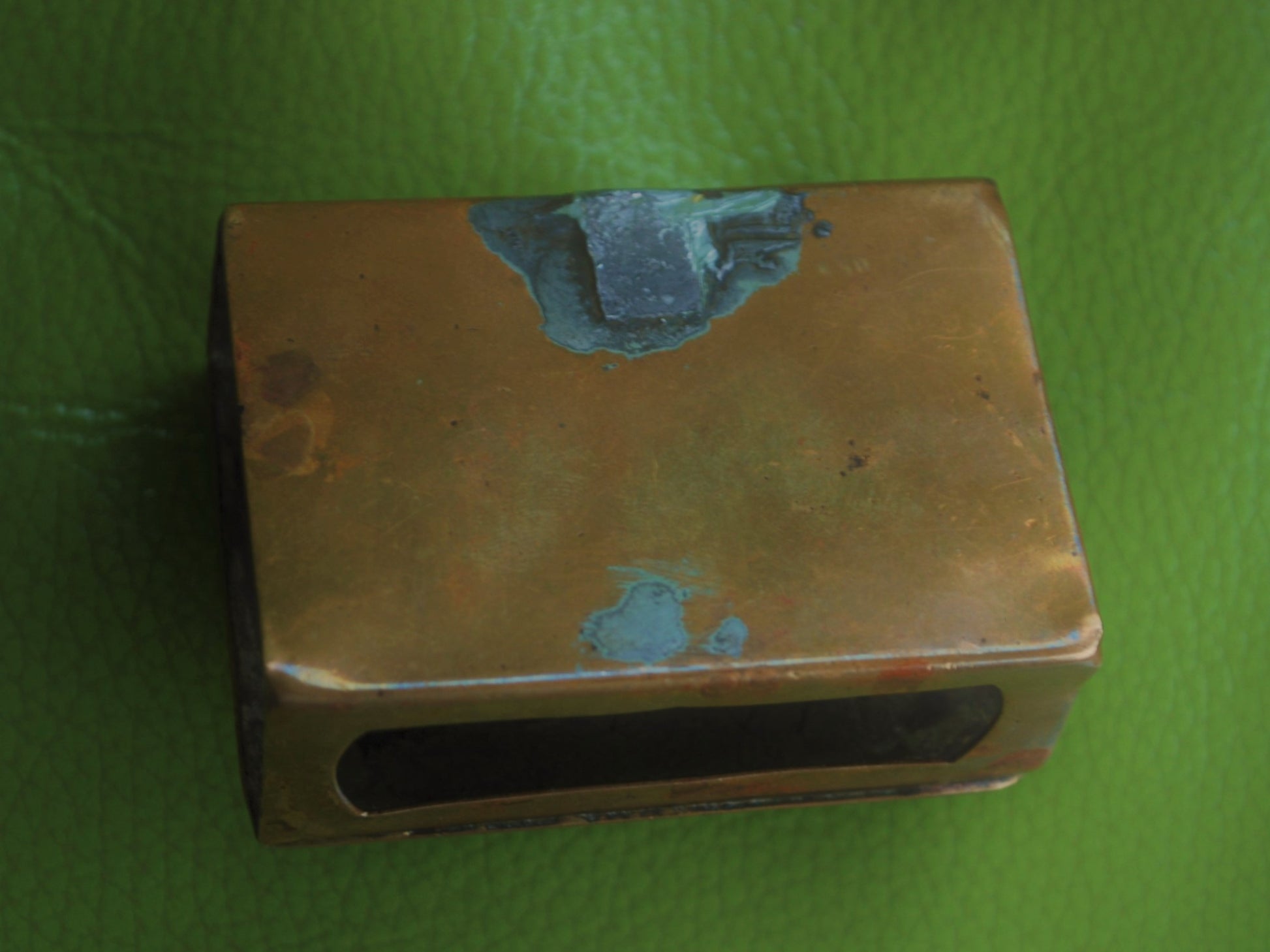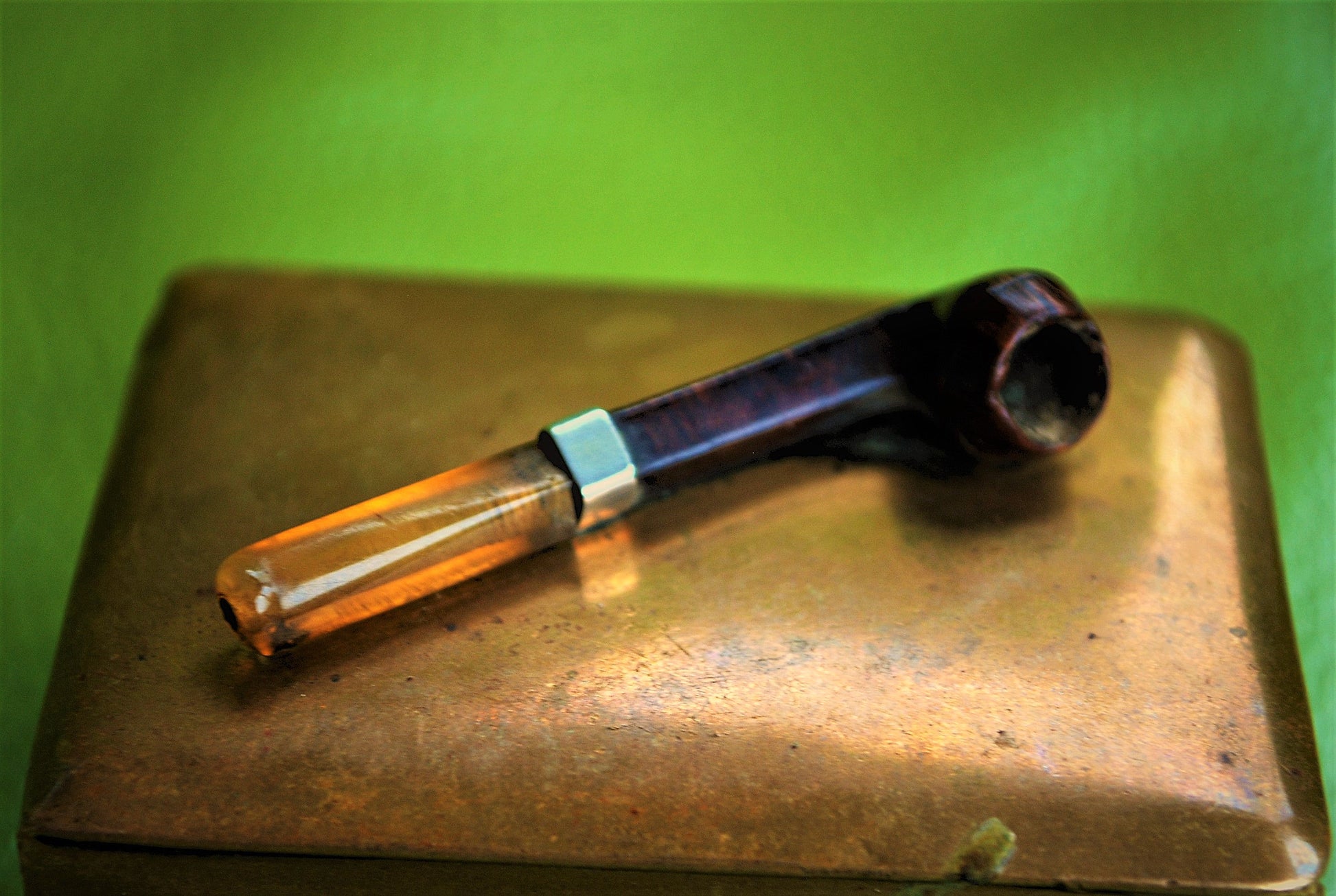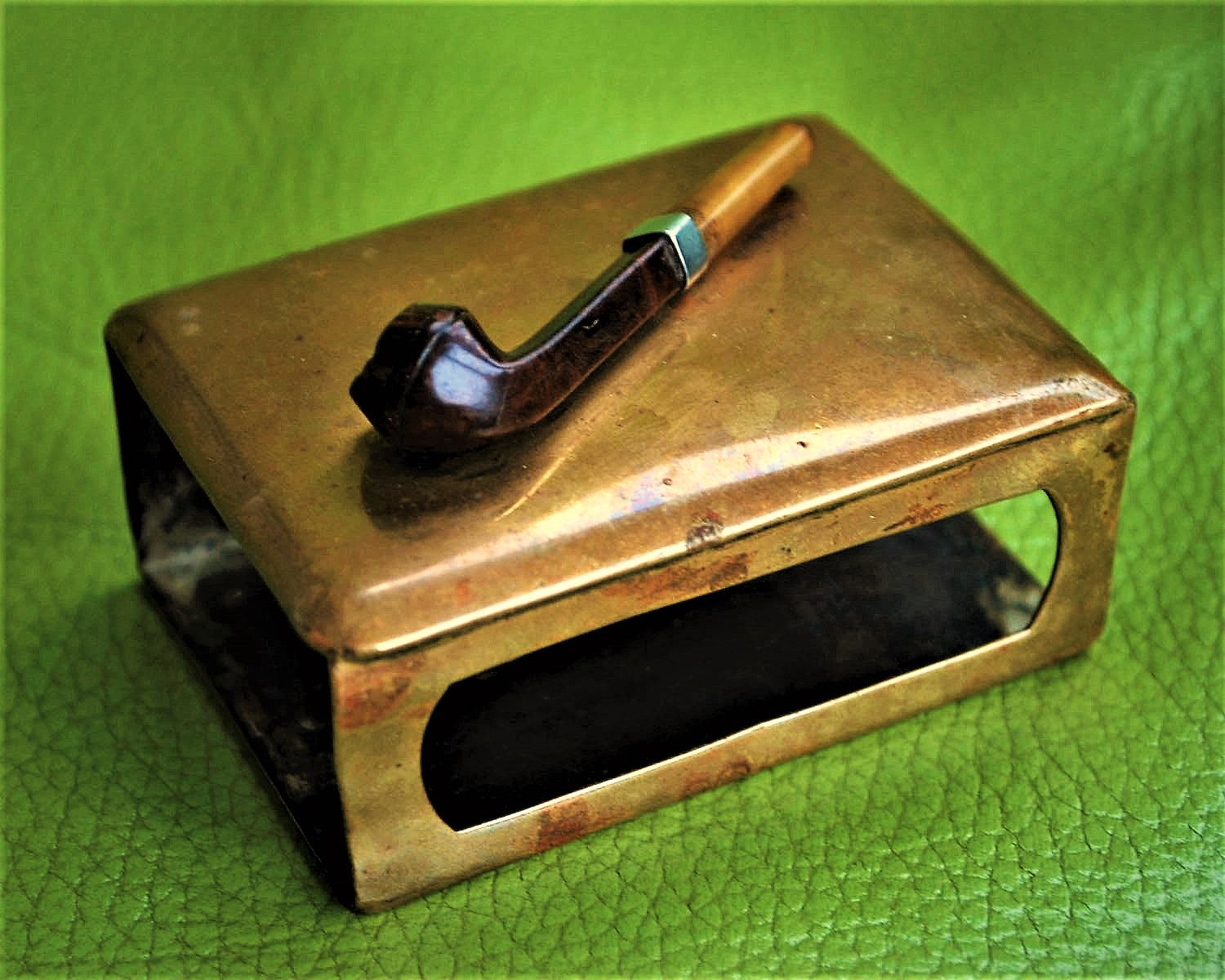 Oude Messing Tabaksdoos met Kunststof Pijp