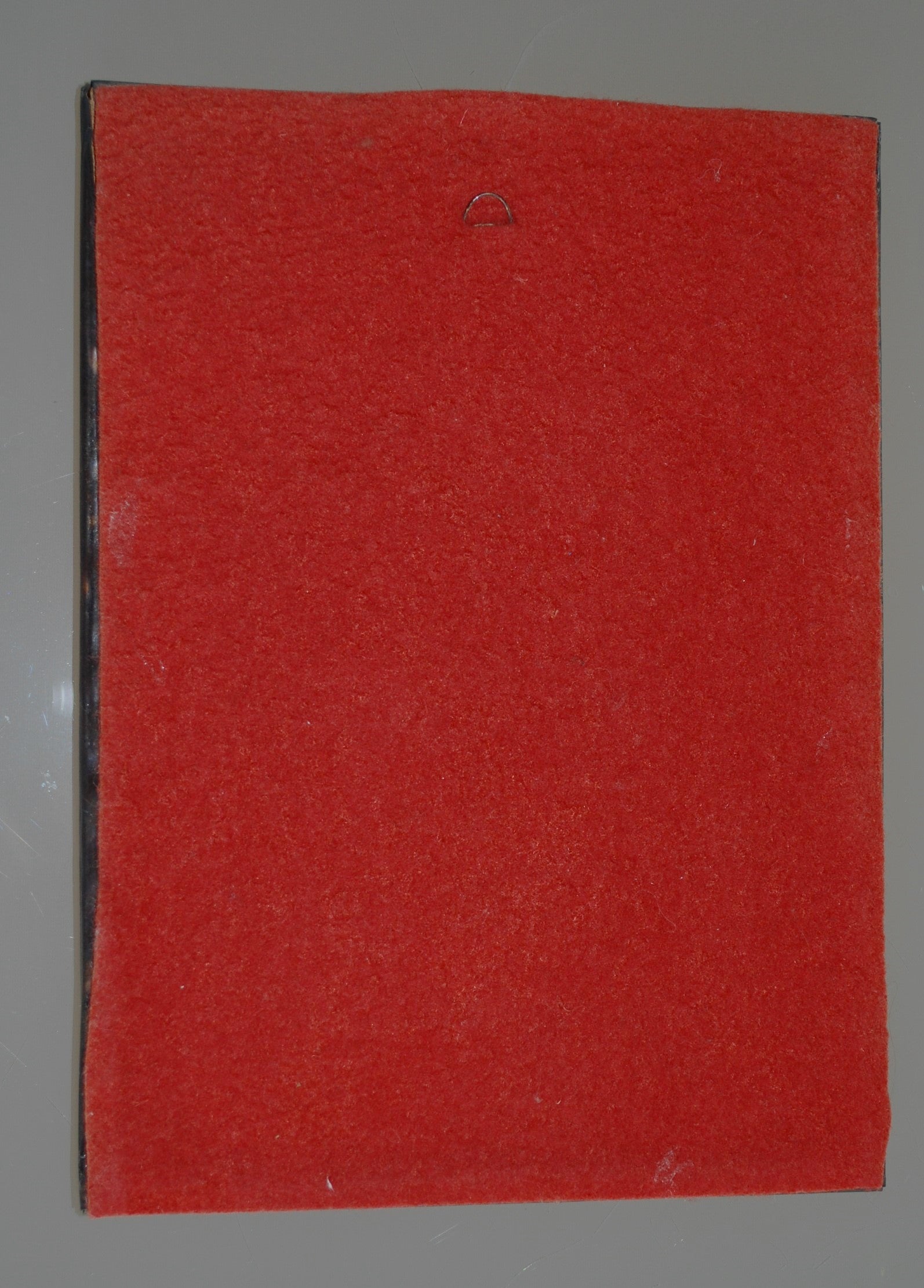 Achter plaat is van hout en afgedekt met rode vilt met ophangoog.