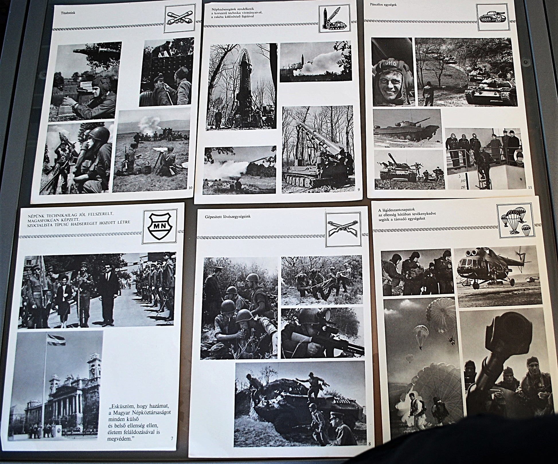 Hongaars map met afbeeldingen van het Hongaars leger is oefeningen met de Warschaupact landen en Vietnam.