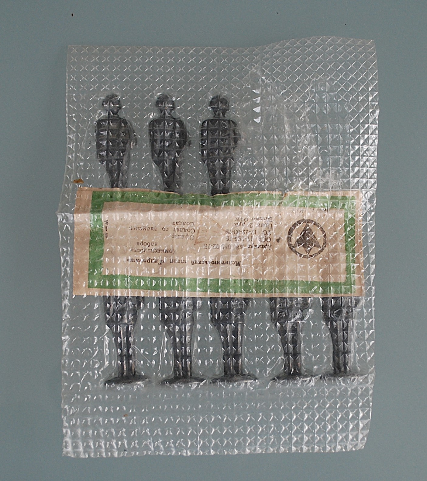 Op papier met ster staat soldaat met aan de achterkant ook tekst.