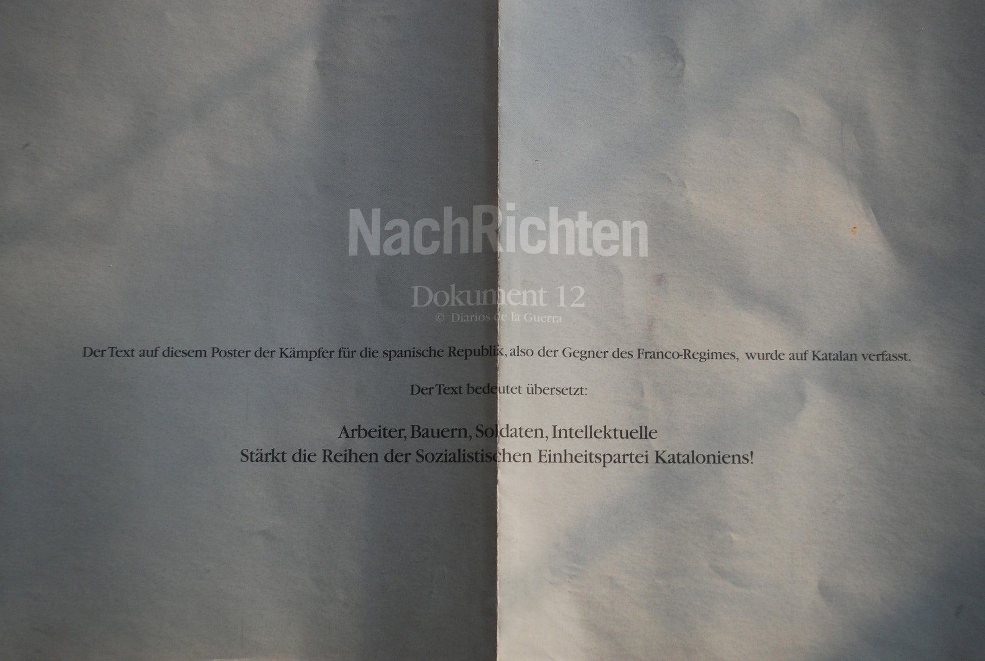 Uiteraard is dit niet de originele poster maar een vermoedelijk een propaganda herdruk uit de jaren 80 met achterop tekst in het Duits met uitleg over de afbeelding.