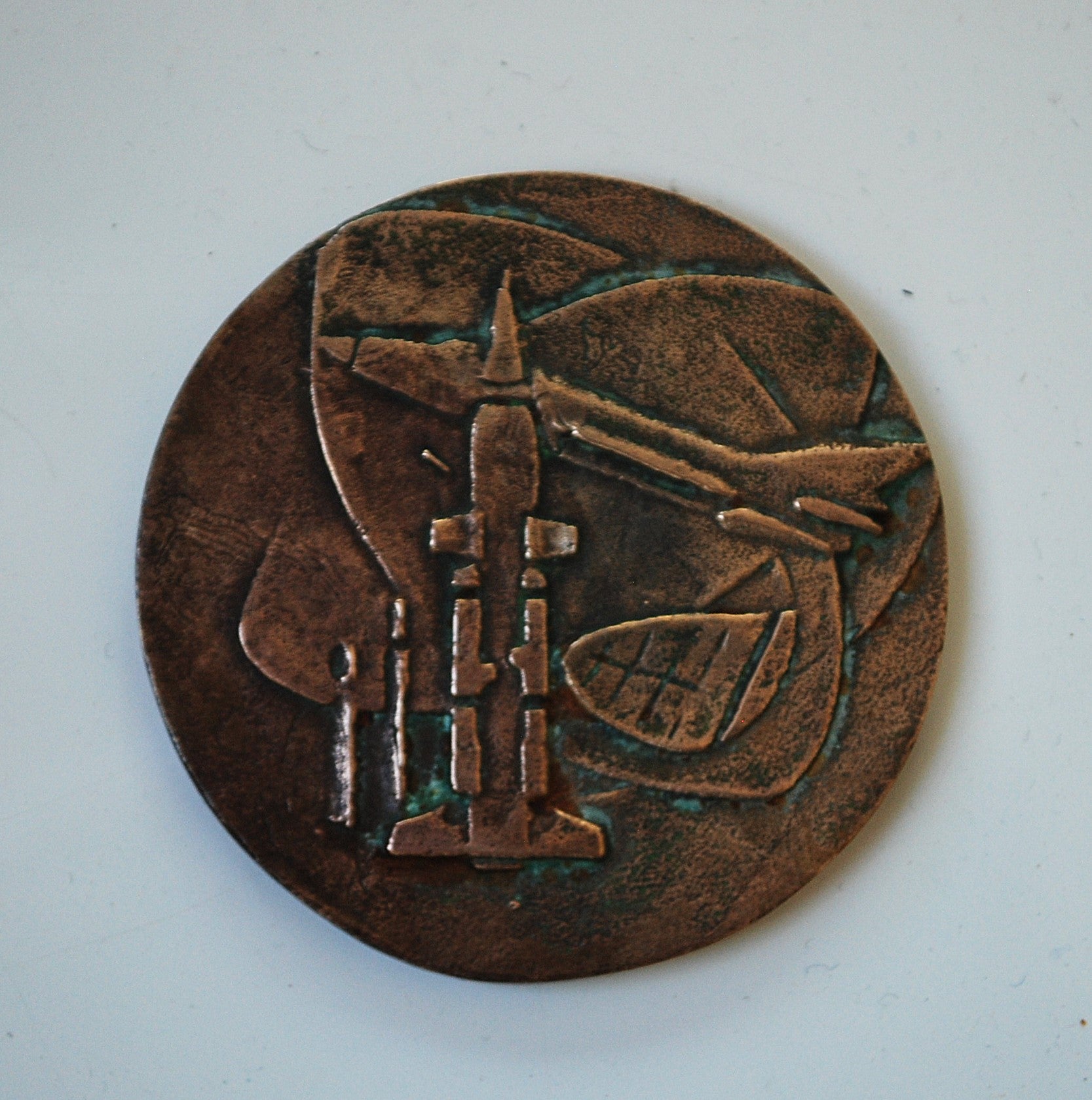 Brons plaque met Radar Mig 21 en 2K11 Krug anti-aircraft missile 1965.