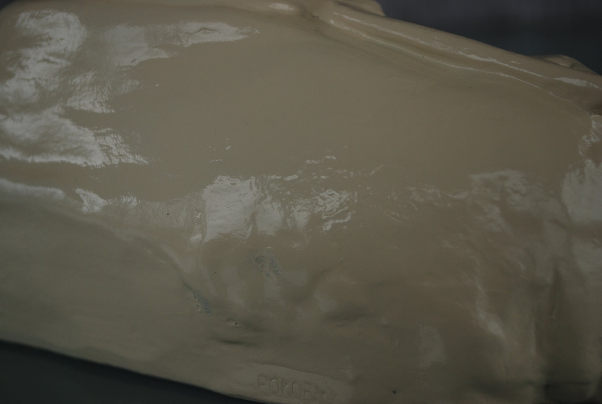 Buste van Stalin gemaakt van keramiek en in de natte klei gestempeld met Pokorný en binnenin geschreven een nummer 3.