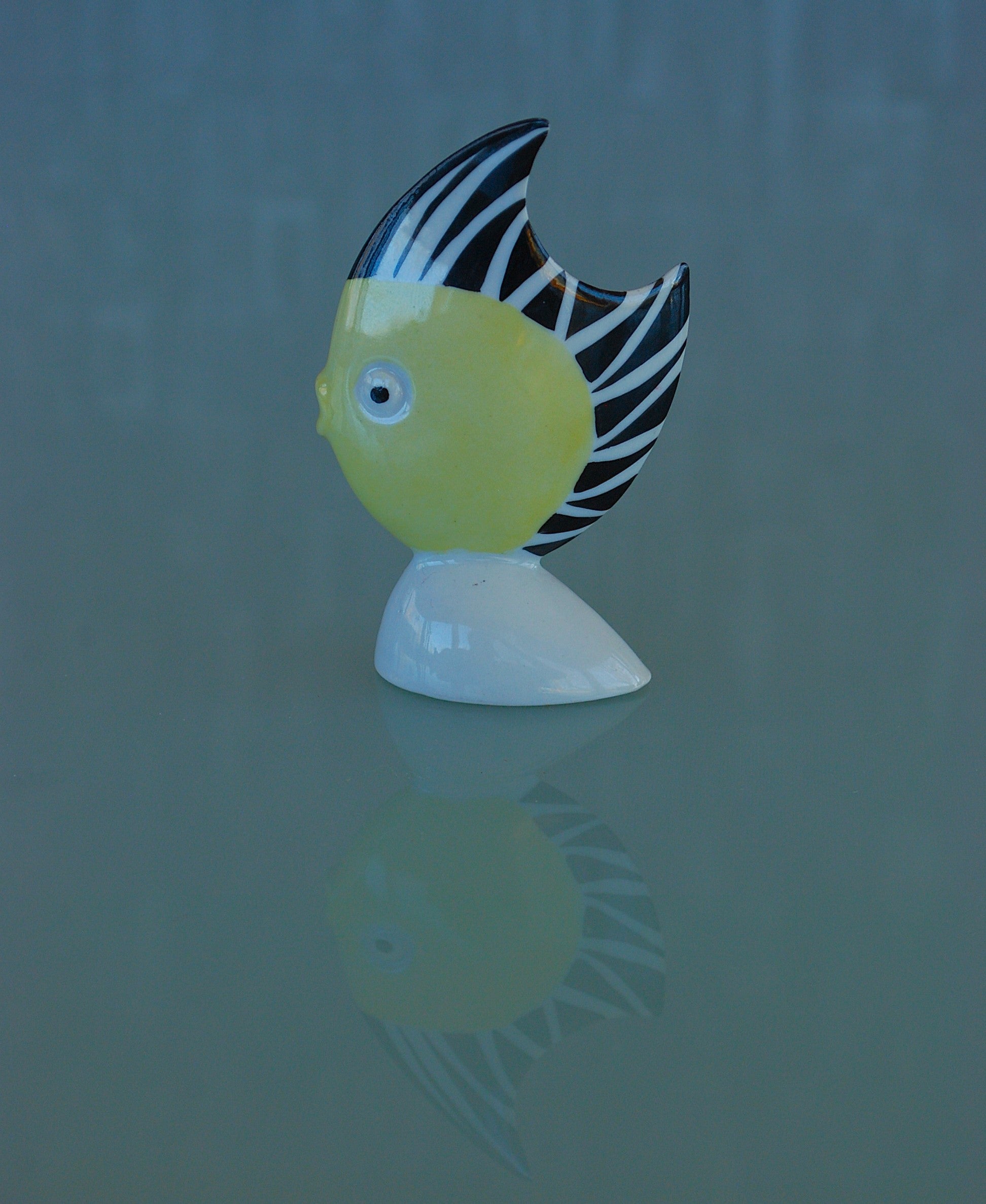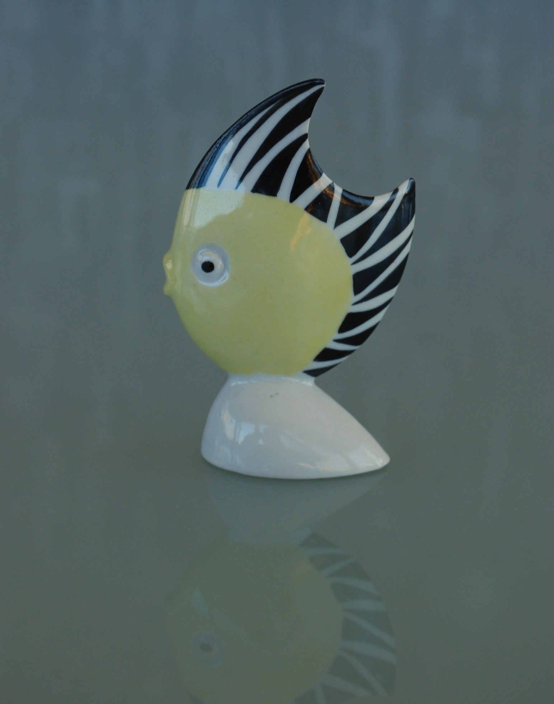 Stilistische Vis zwart wit geel van Kunstenaar Veress Miklós.