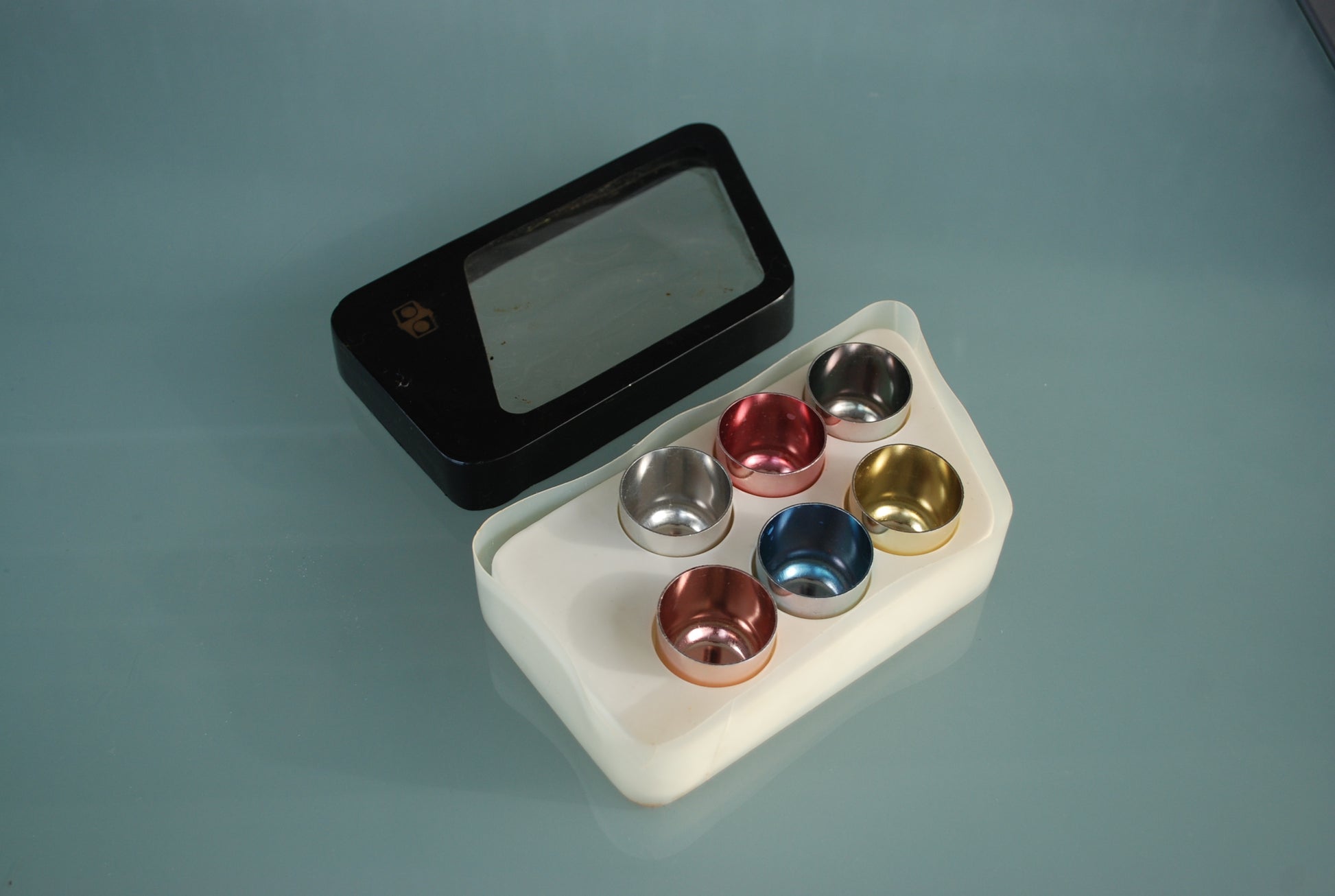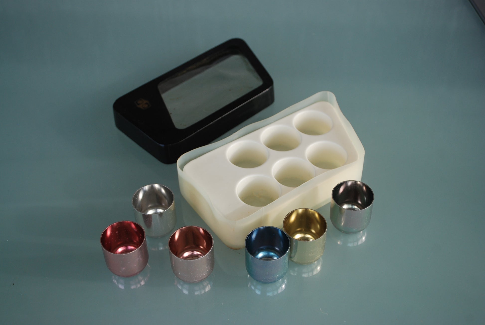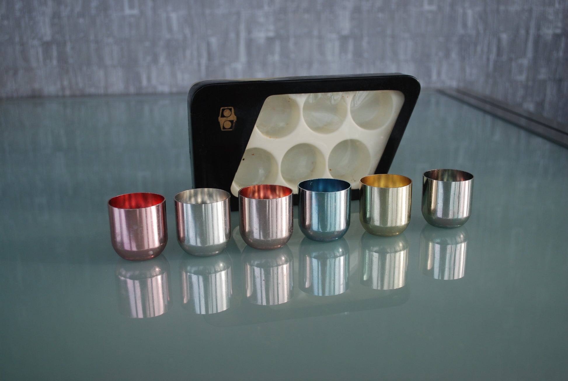 Gekleurde aluminium Russisch vodka glazen.