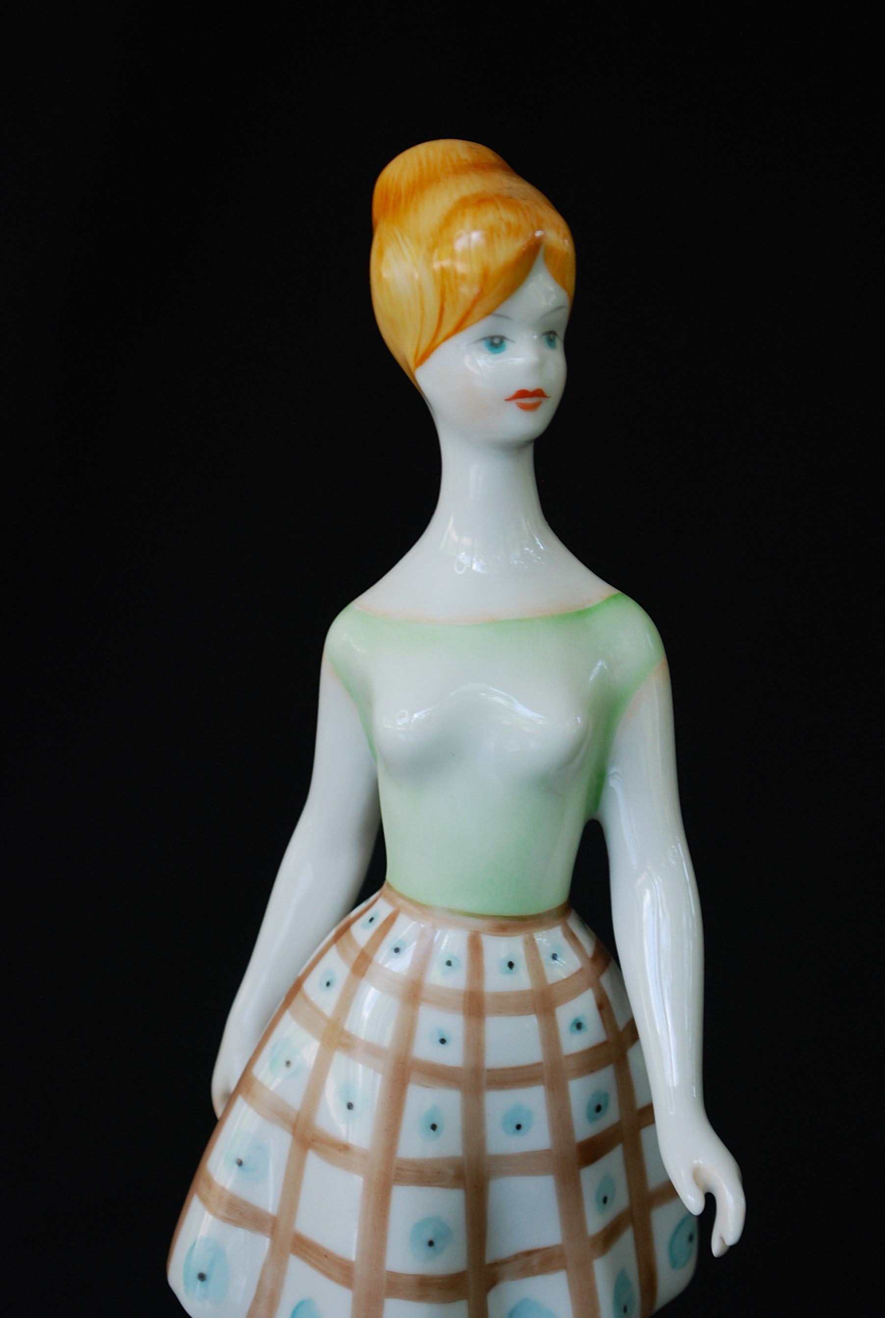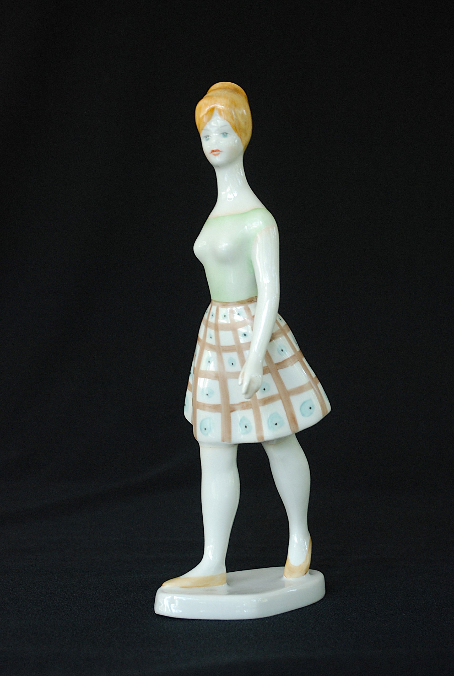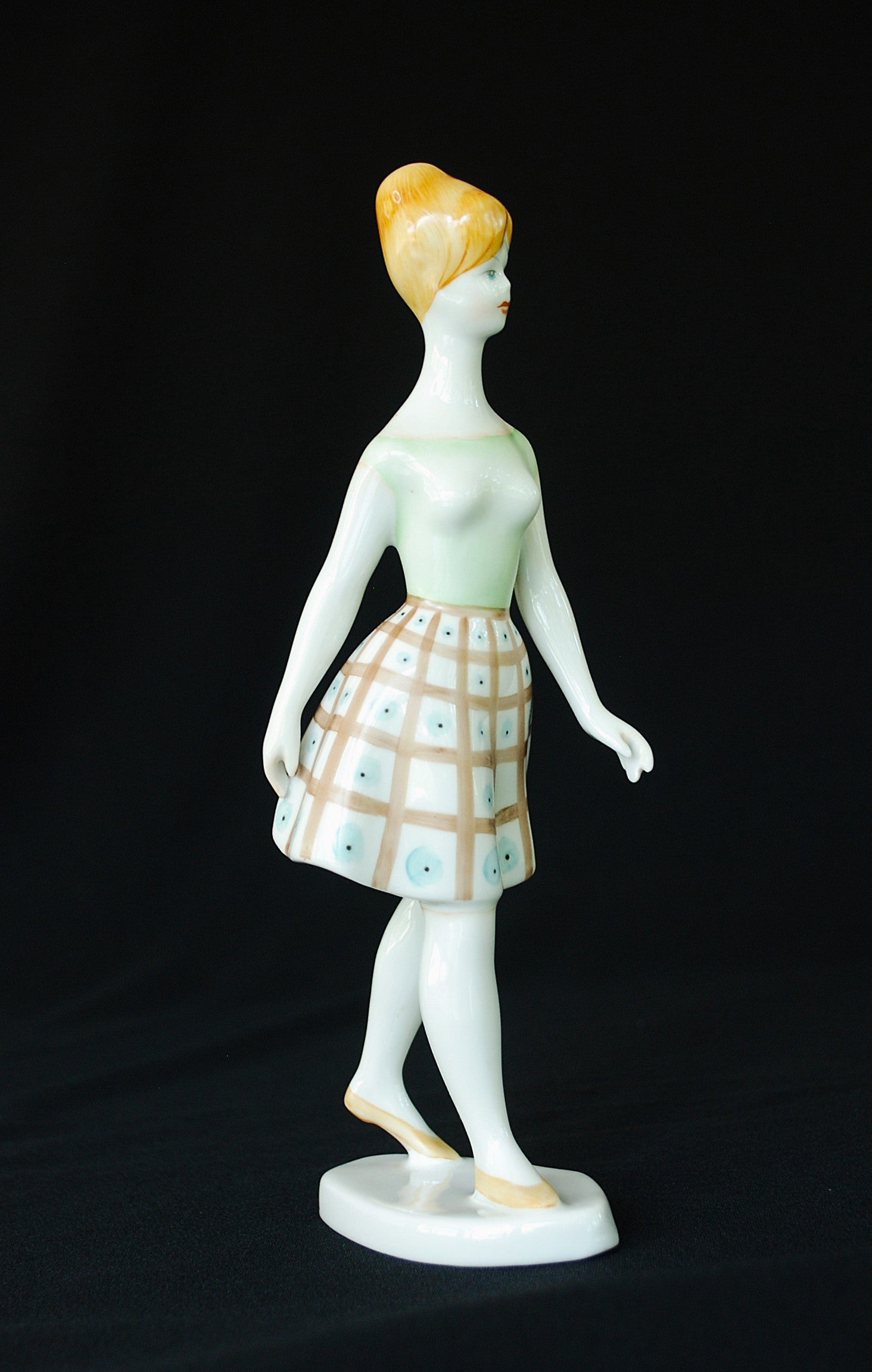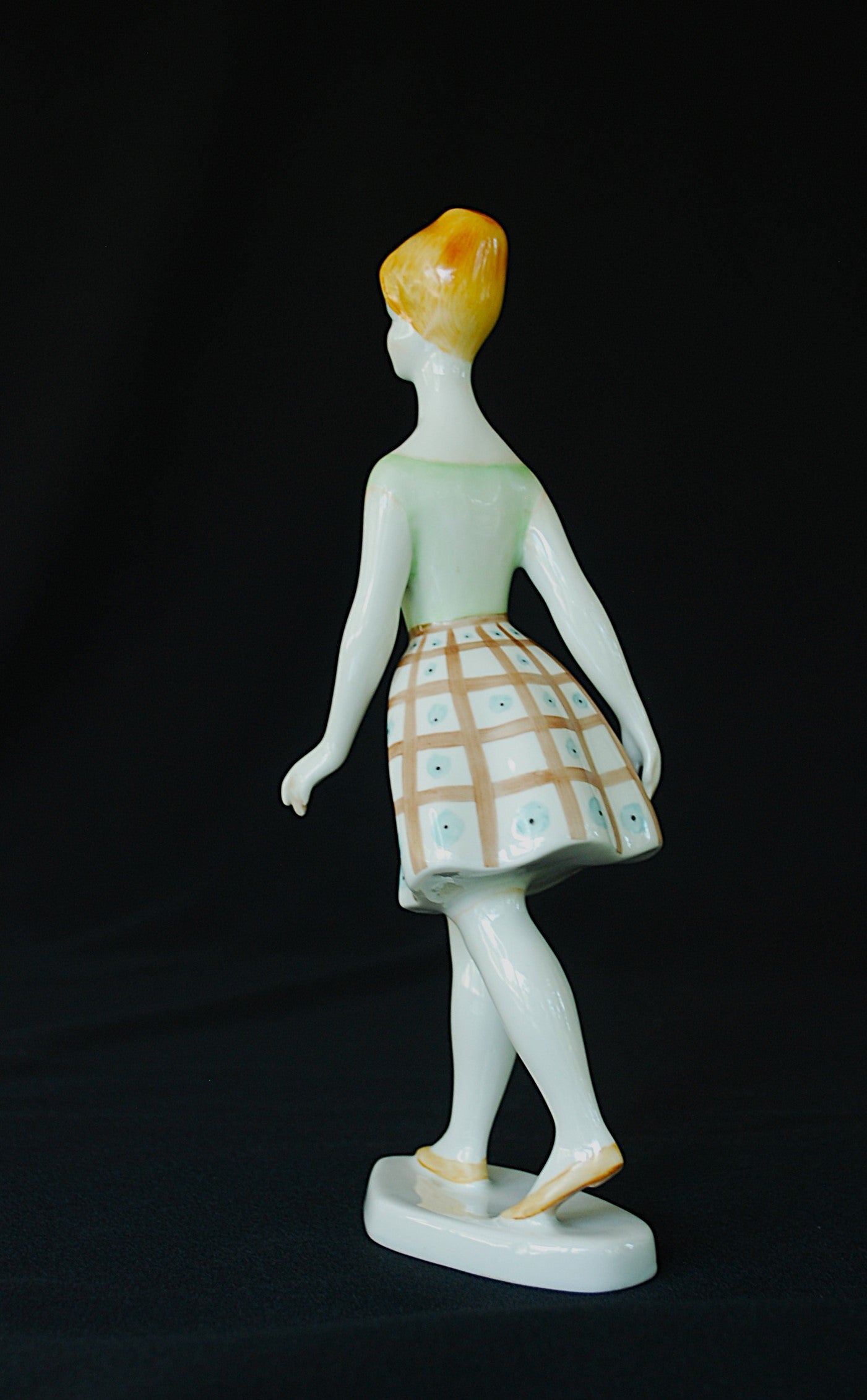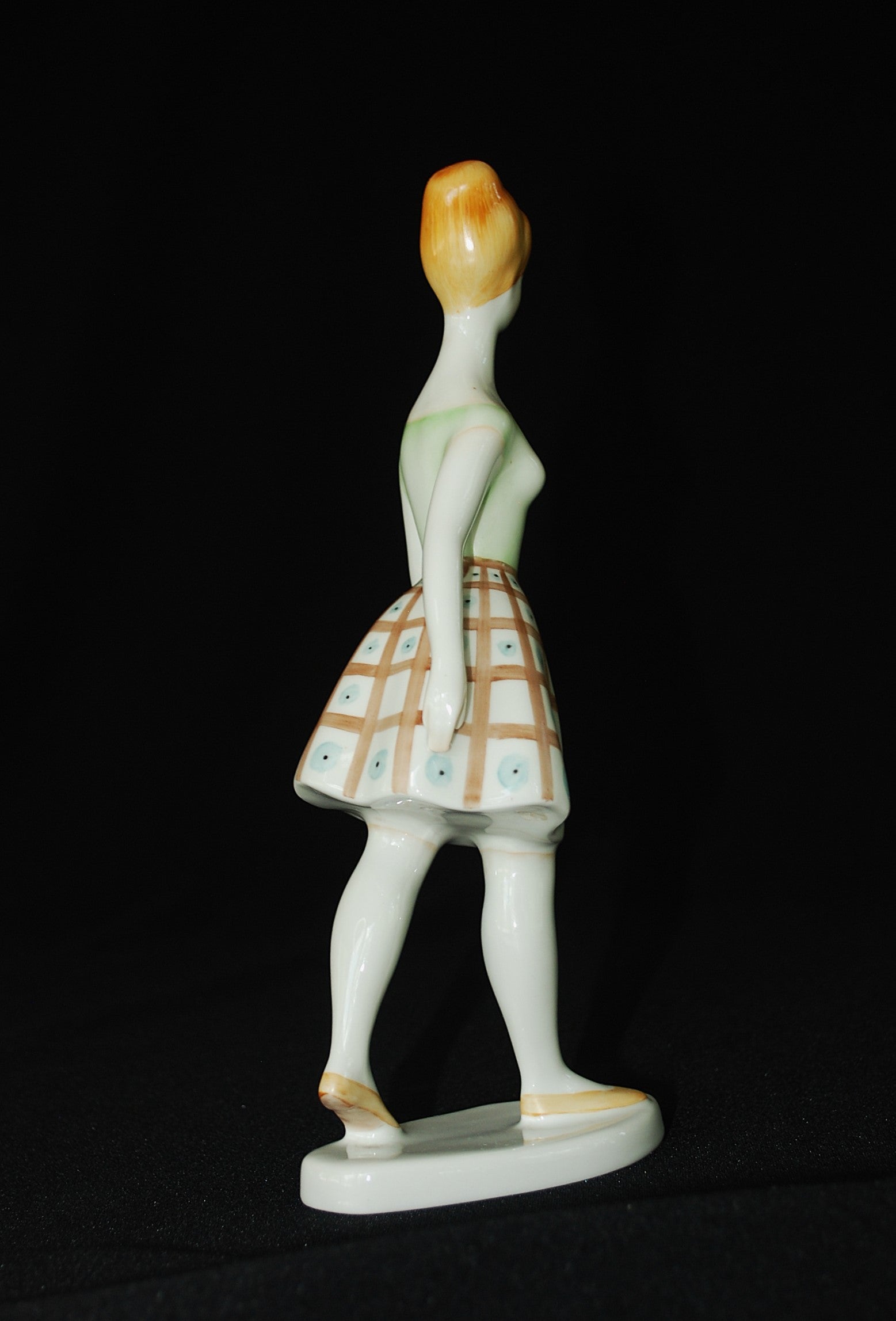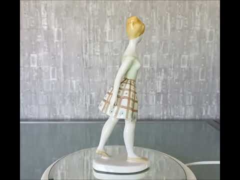 Handgeschilderd lopende vrouw van de Hollohaza Porselein Fabriek.