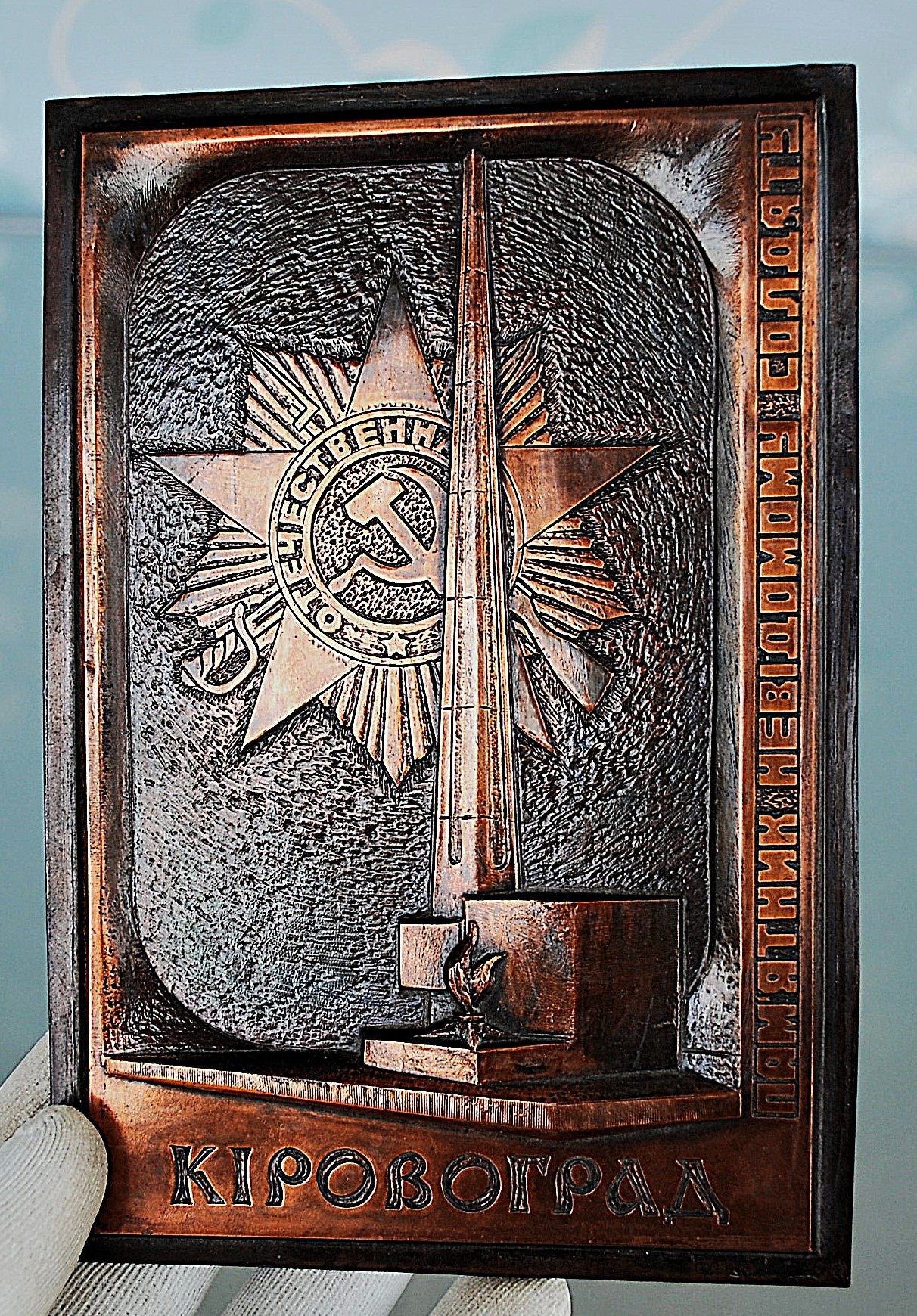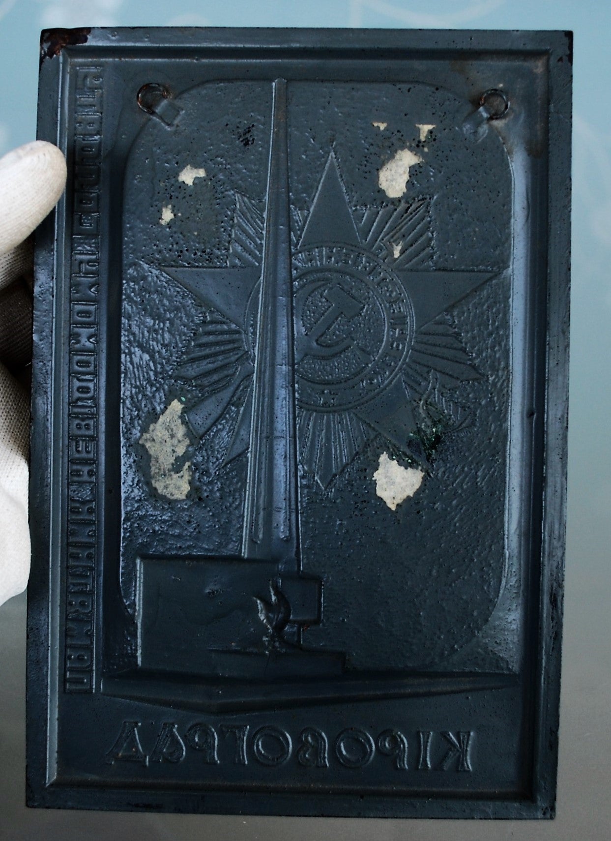 Monument met eeuwige vlam en een soort bajonet achtig zuil met erachter een medaille.