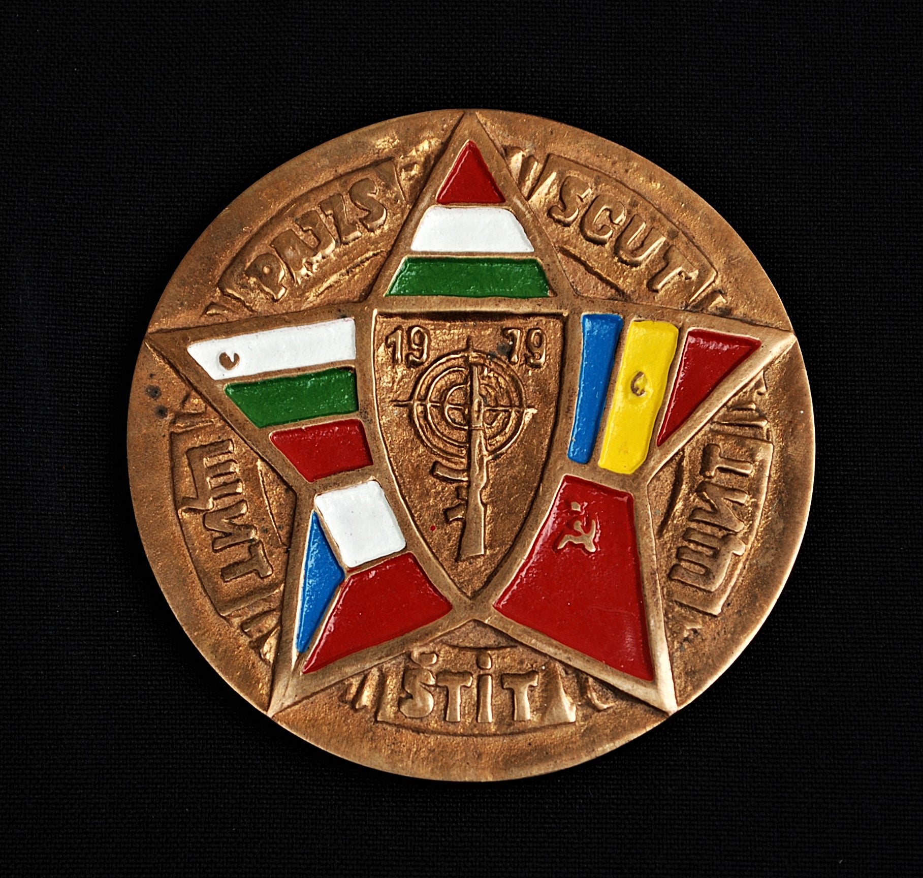 In de STER zijn de vlaggen van de 5 landen te zien en in hun eigen taal staat er dan SHIELD ernaast. Middenin een AK47 met schietschijf en het jaartal 1979.