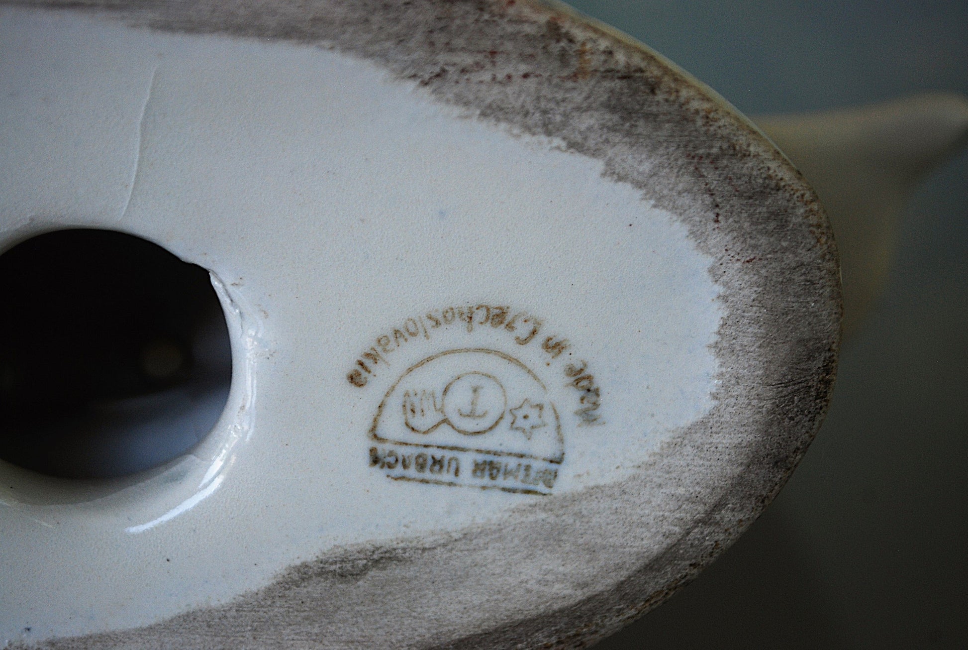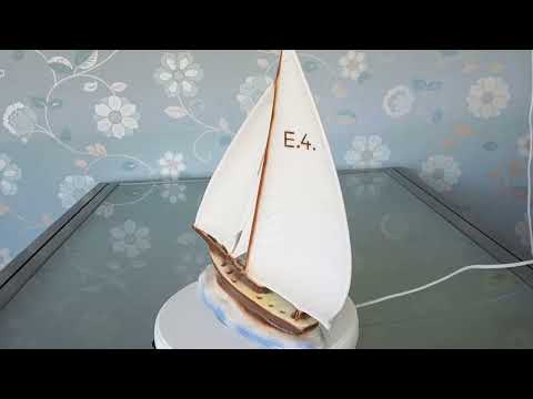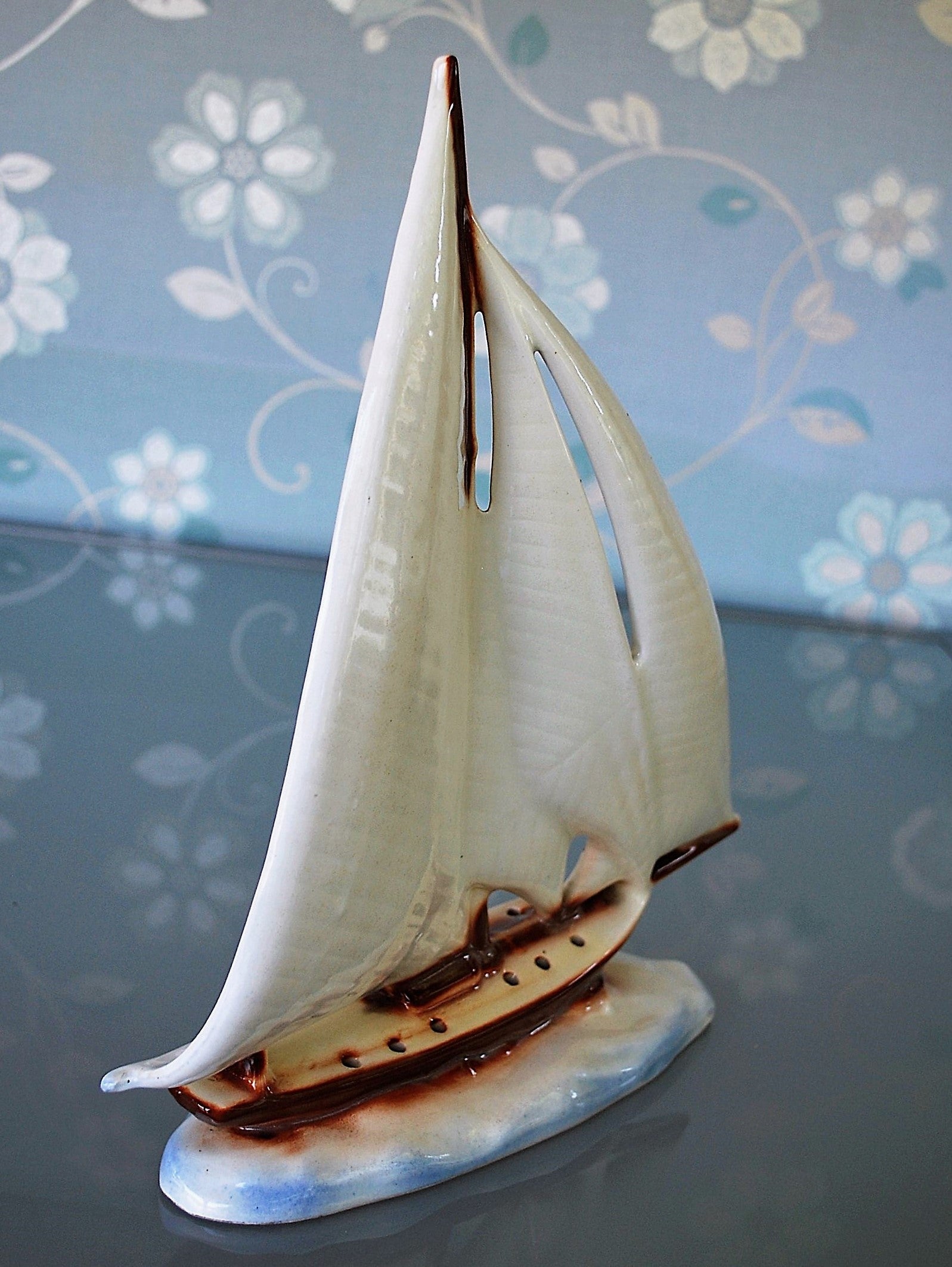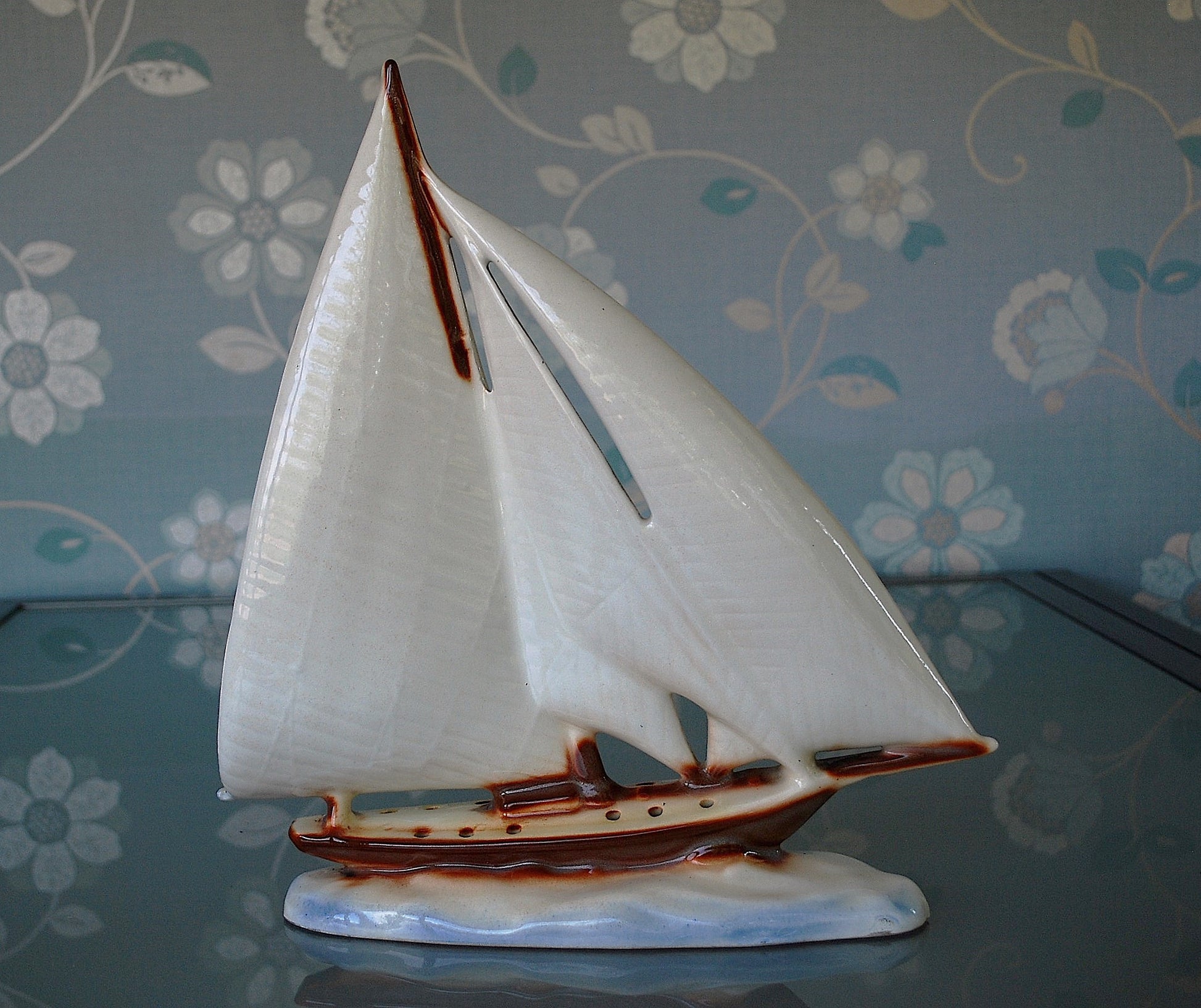 Zeilboot met nr. E.4. door Ditmar Urbach uit Tsjechoslowakije gemaakt rond 1935. Gemaakt door Ditmar Urbach keramiek in de jaren 30.